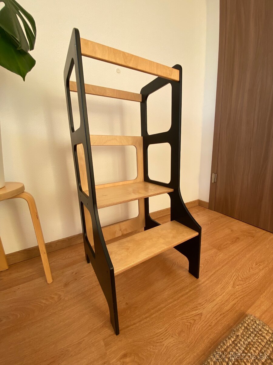 Drevená učiaca veža pre deti - [28.2. 2026]Predám drevenú učiacu vežu s nastaviteľnou výškou. Výborná pomôcka pre deti na pozeranie, lozenie a učenie sa. Deti tak pomáhajú pri varení v kuchyni. Deťom umožňuje bezpečne dosiahnuť na úroveň kuchynskej linky alebo stola a zapájať sa tak do spoločných aktivít.