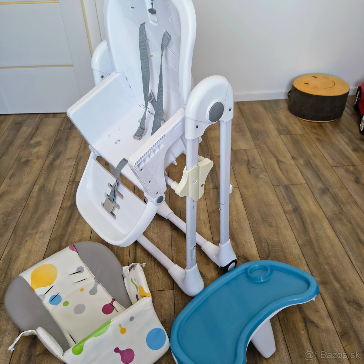 Stolička pre deti od 6 mesiacov. Stabilná, nastaviteľný podnos, umývateľný poťah z eko kože. Tri polohy nastavenia operadla, 3-polohová opierka na nohy,