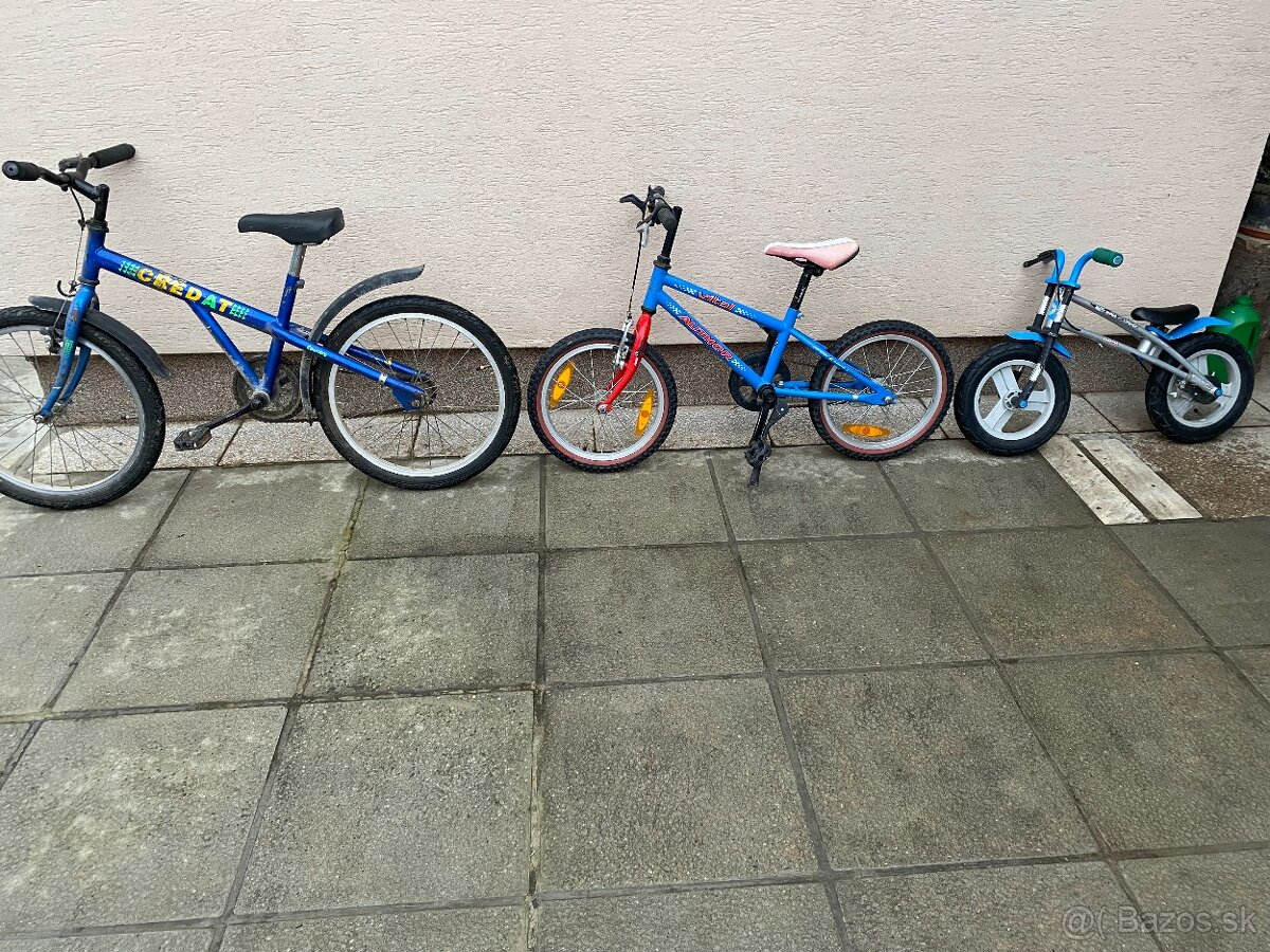 Predám detské bicykle credat 40,00eur,author 30,00eur,odražadlo 10,00eur zachovalé.