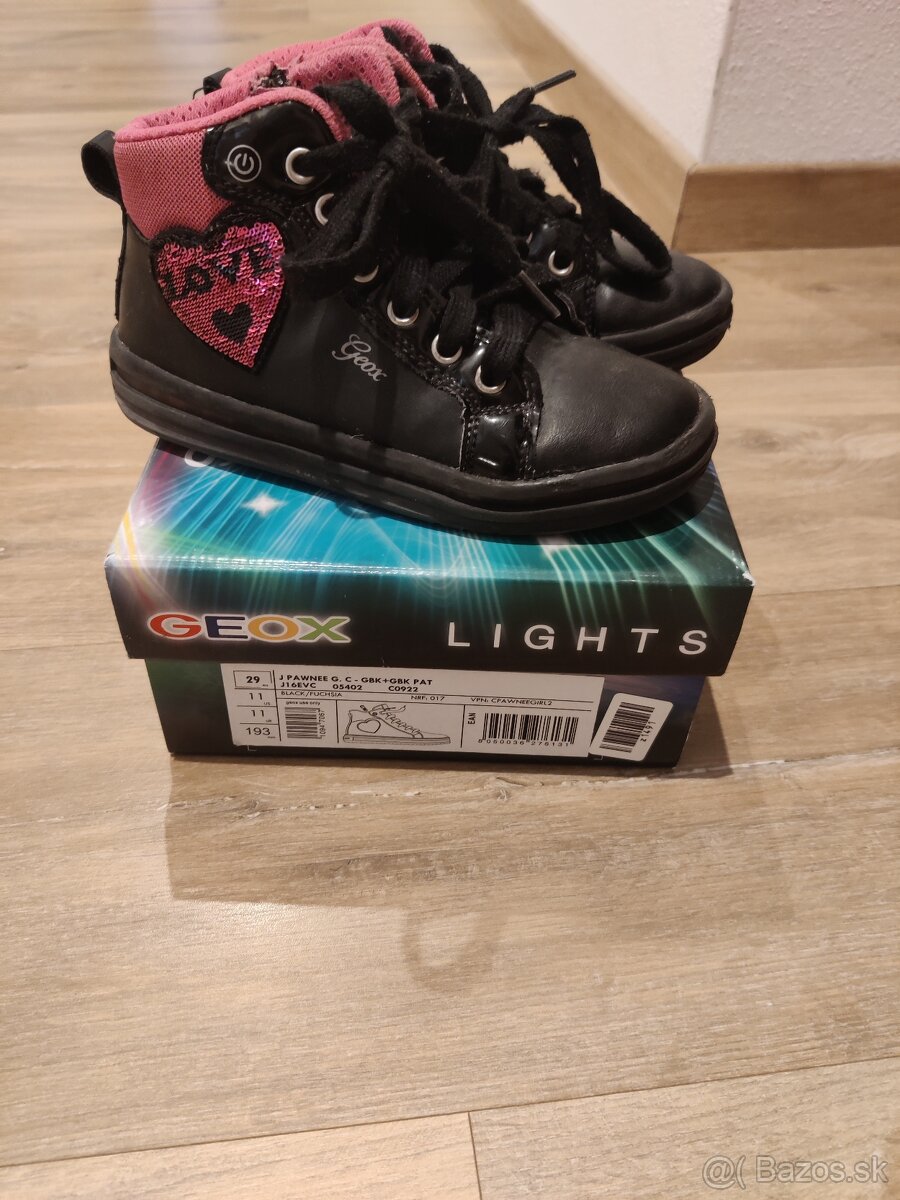 Kvalitné kožené geox topánky, veľkosť 29, vd 17,5 cm, nosené jedným dieťaťom kúpené nové,v peknom nosenom stave,už nesvietia