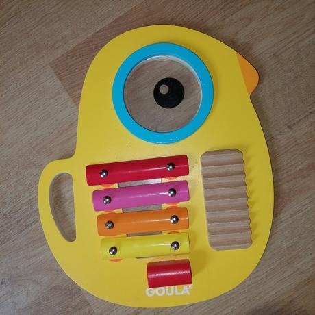 hudobná hra pre najmenších hudobníkov.Obsahuje tri hudobné nástroje v jednom: xylofón, bubon a perkusie. Od 1 roku.