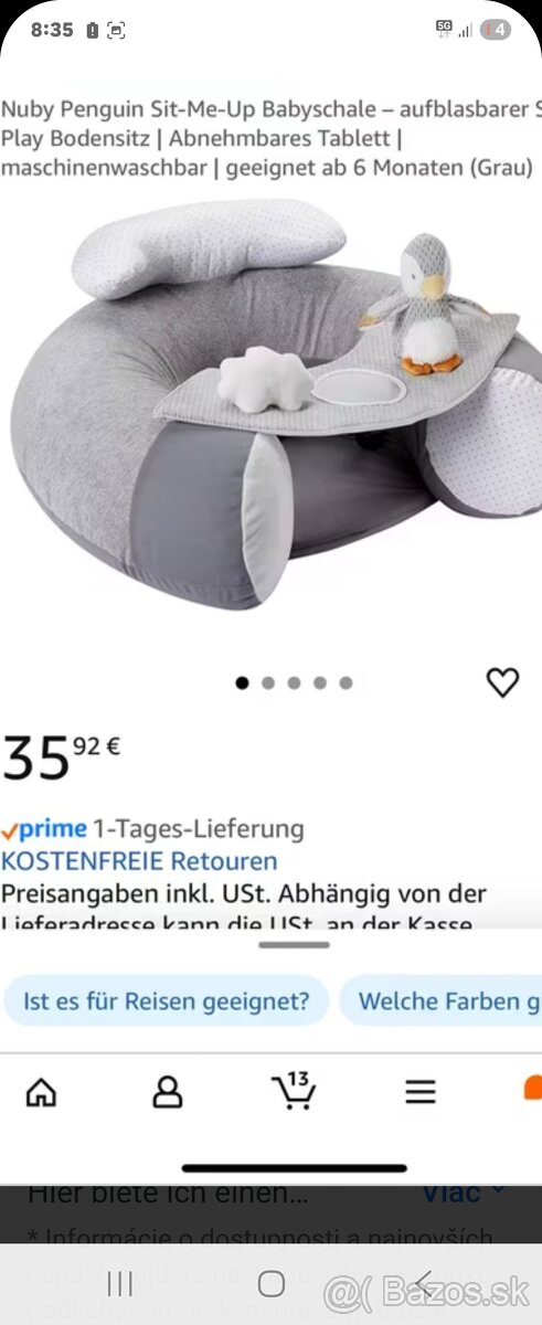 Nafukovacie kresielka, sedačka pre deti, ktoré sa učia sedieť, poťah sa dá stiahnuť a je prateľný, súčasťou sú aj drobné hračky
