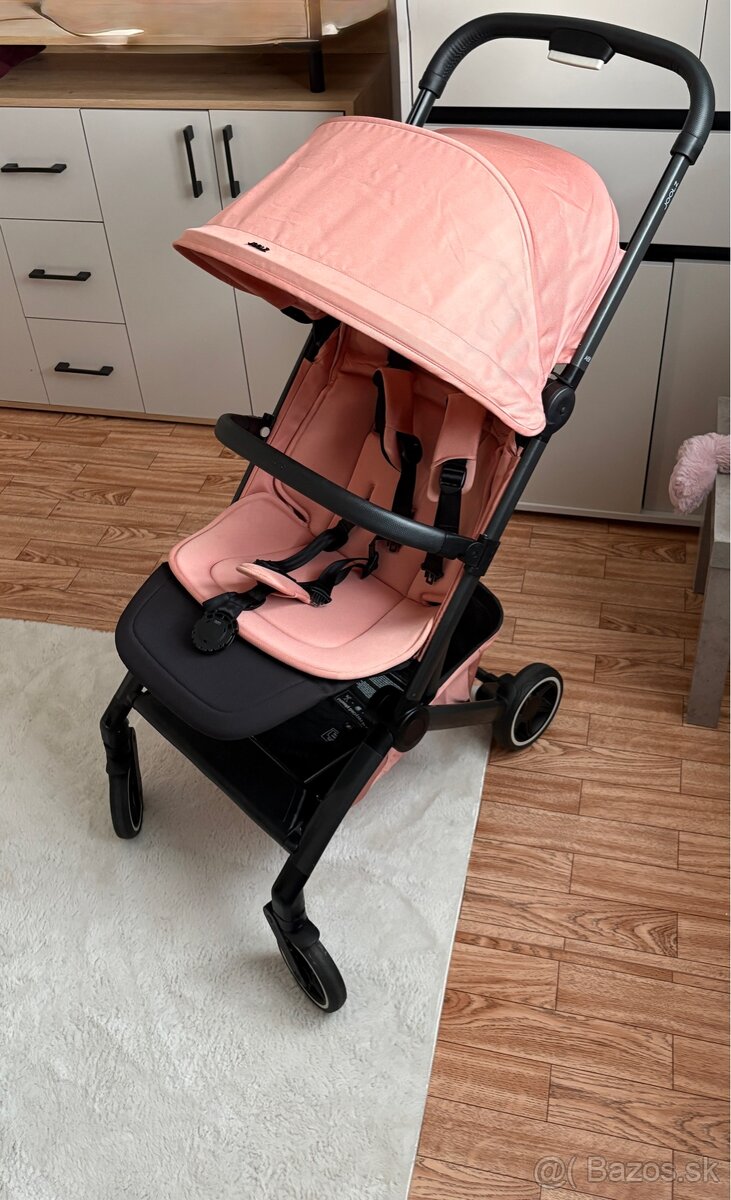 Ružovej farby, ktorá sa už nedá zohnať. Súčasťou je cestovná taška, madlo, nánožník a fusak.