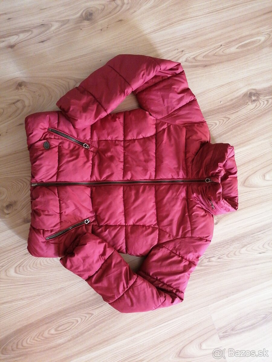 Veľkosť 140, v skutočnosti je farba krajšia, tmavšia matná bordová. Bez poškodení. Kapucňa je schovaná v golieri