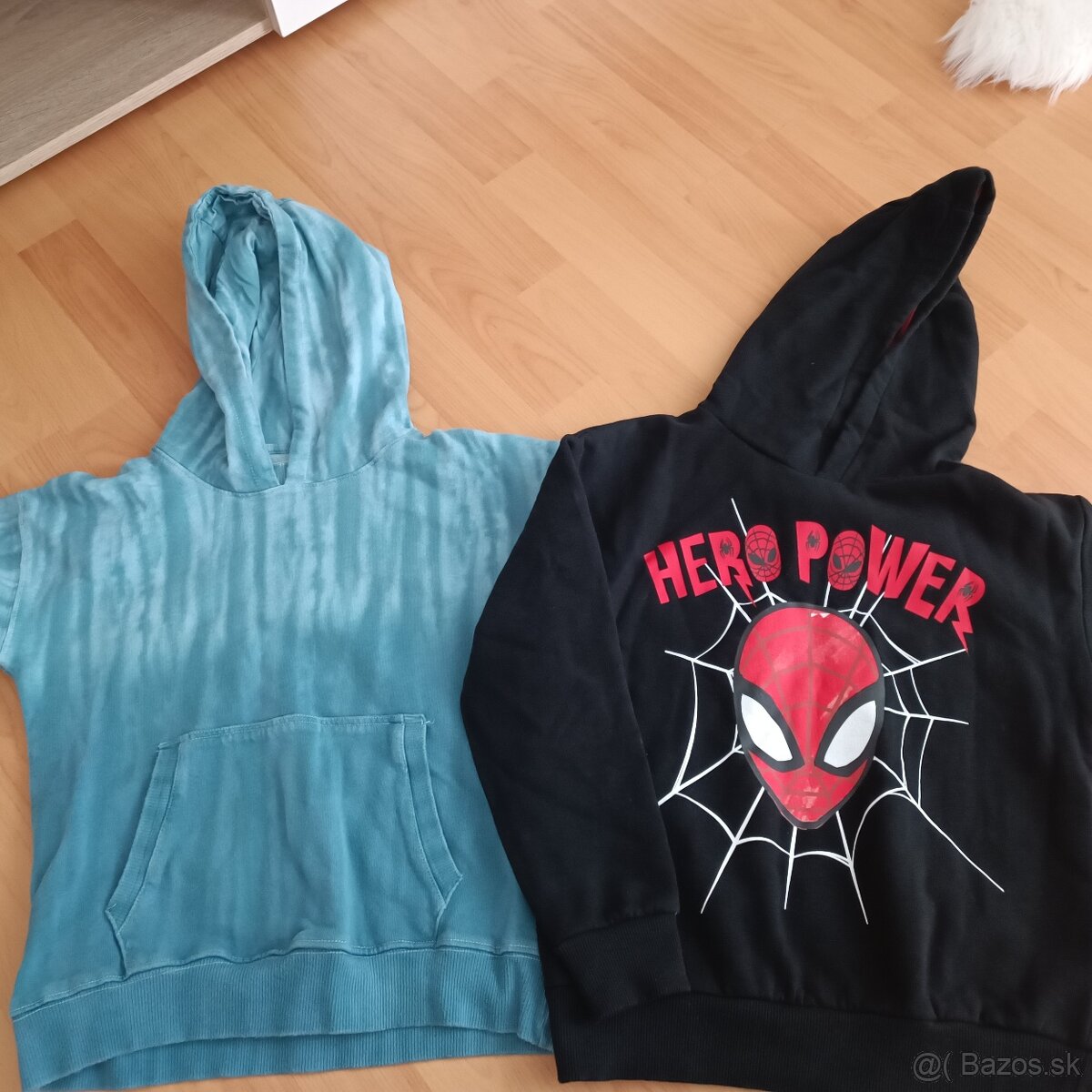 Pár krát oblečené, značka F&F, reserved,čierna veľ 134, modrá 128 ale sedí tiež má veľkosť 134,vcena za obe 7 euro, cena je bez pošty...