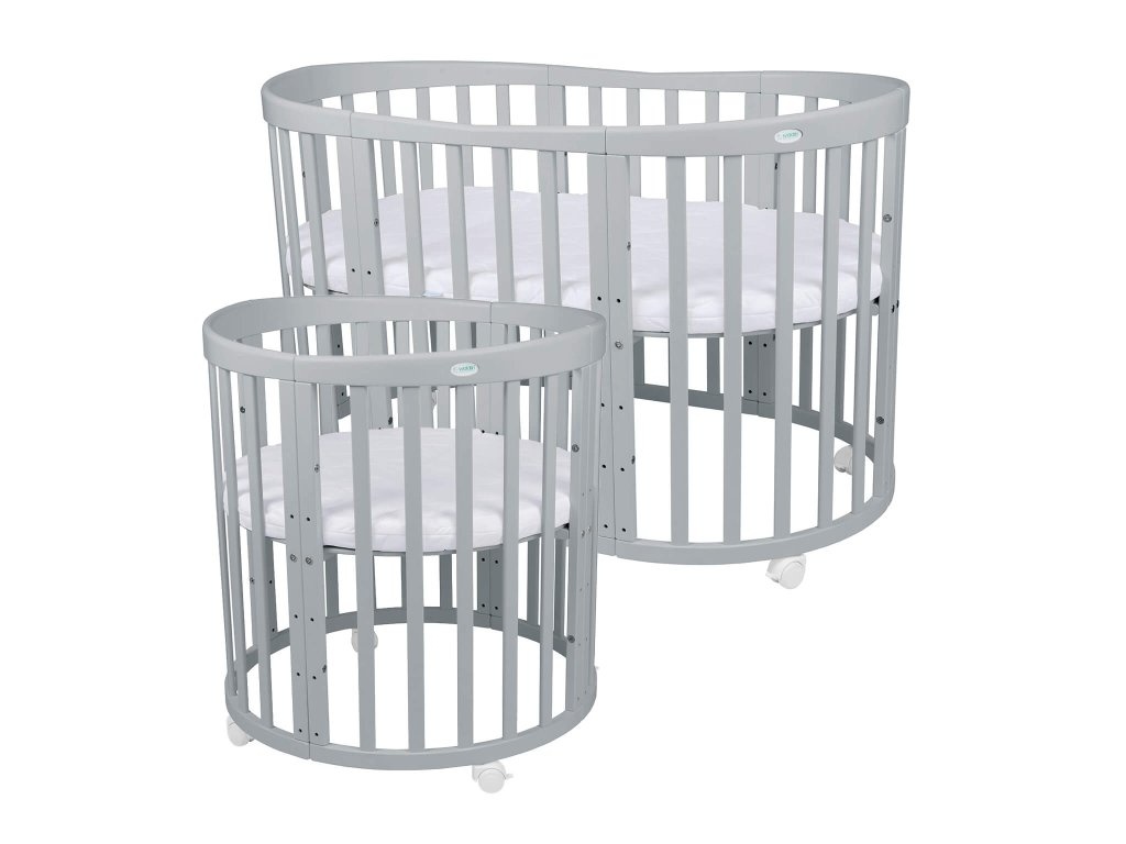 Predám rastúcu používanú 3roky detskú postieľku bledošedej farby. Postieľka má koliečka a aj lyžiny na húpanie. Má štyri výškové úrovne. Matrac okrúhly aj oválny Vonkajšie rozmery š-78cm d-124cm.
