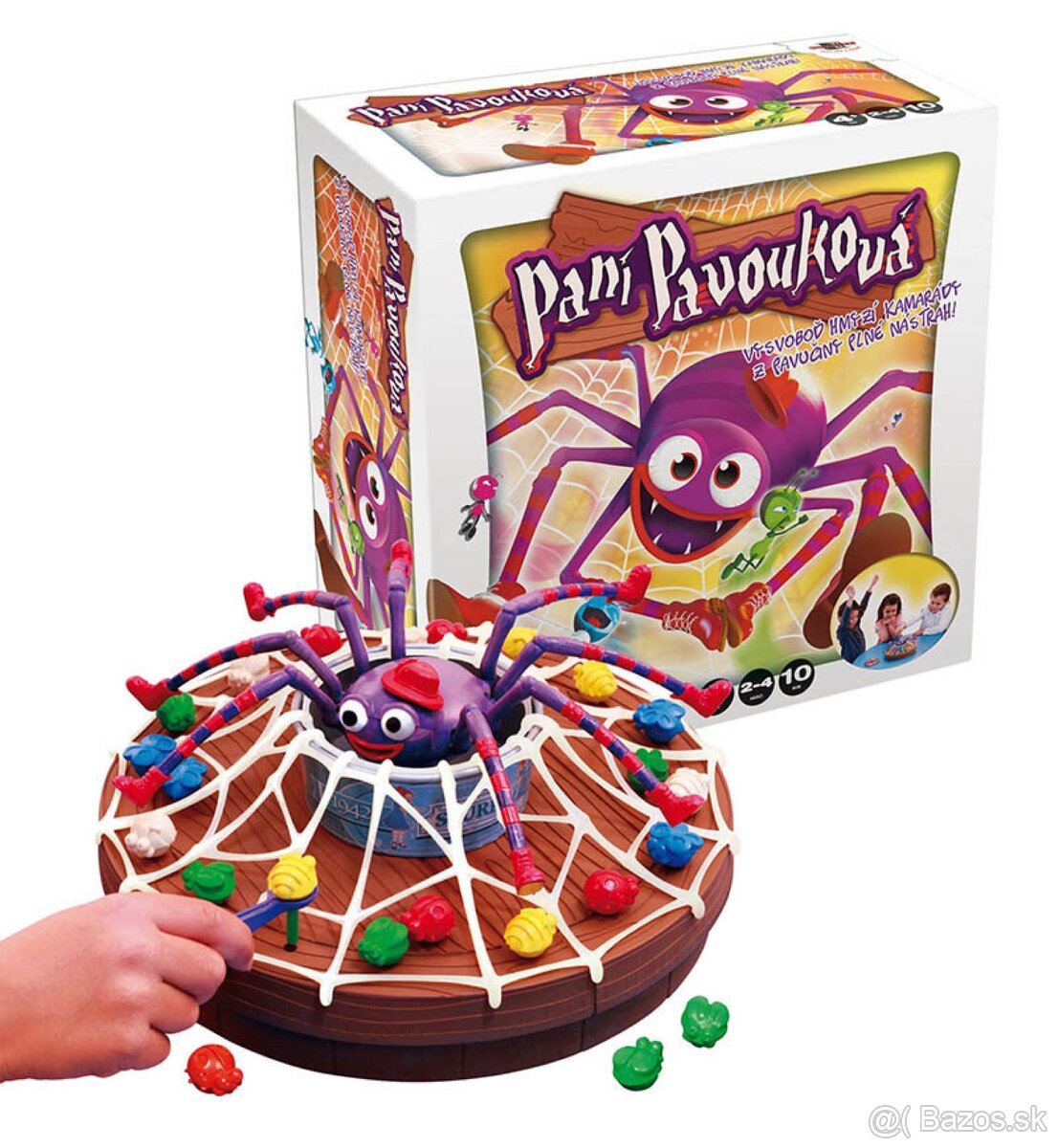 Predám spoločenskú hru - pani Pavúková. Je vo výbornom stave, chýbajú 2 ks hmyzu, viď foto.