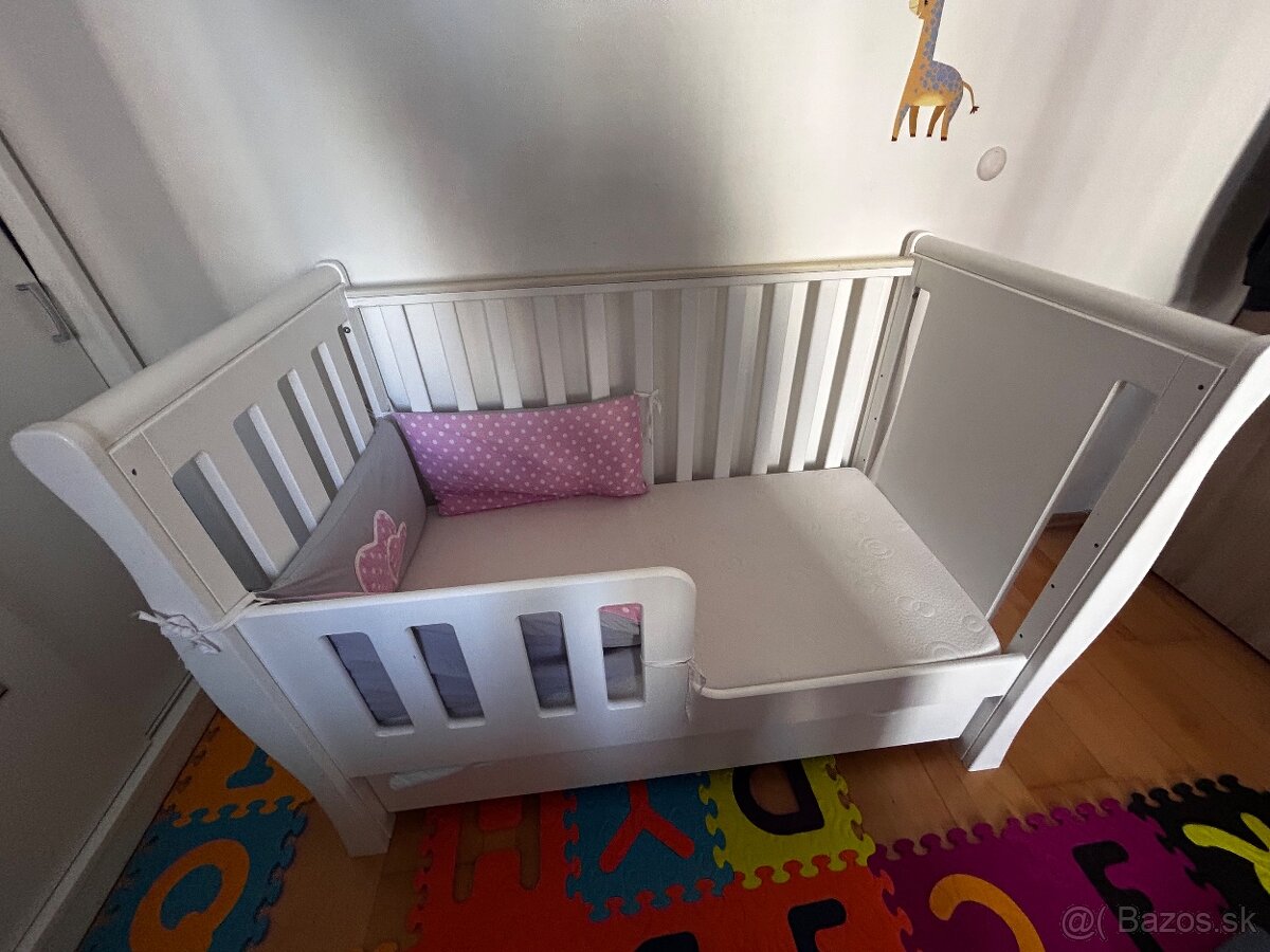 Zoya 89x40 White s prikúpeným matracom, kúpenú v Brendon minulý rok v apríli. Je ako nová- malý spal viac na posteli ako v kolíske.