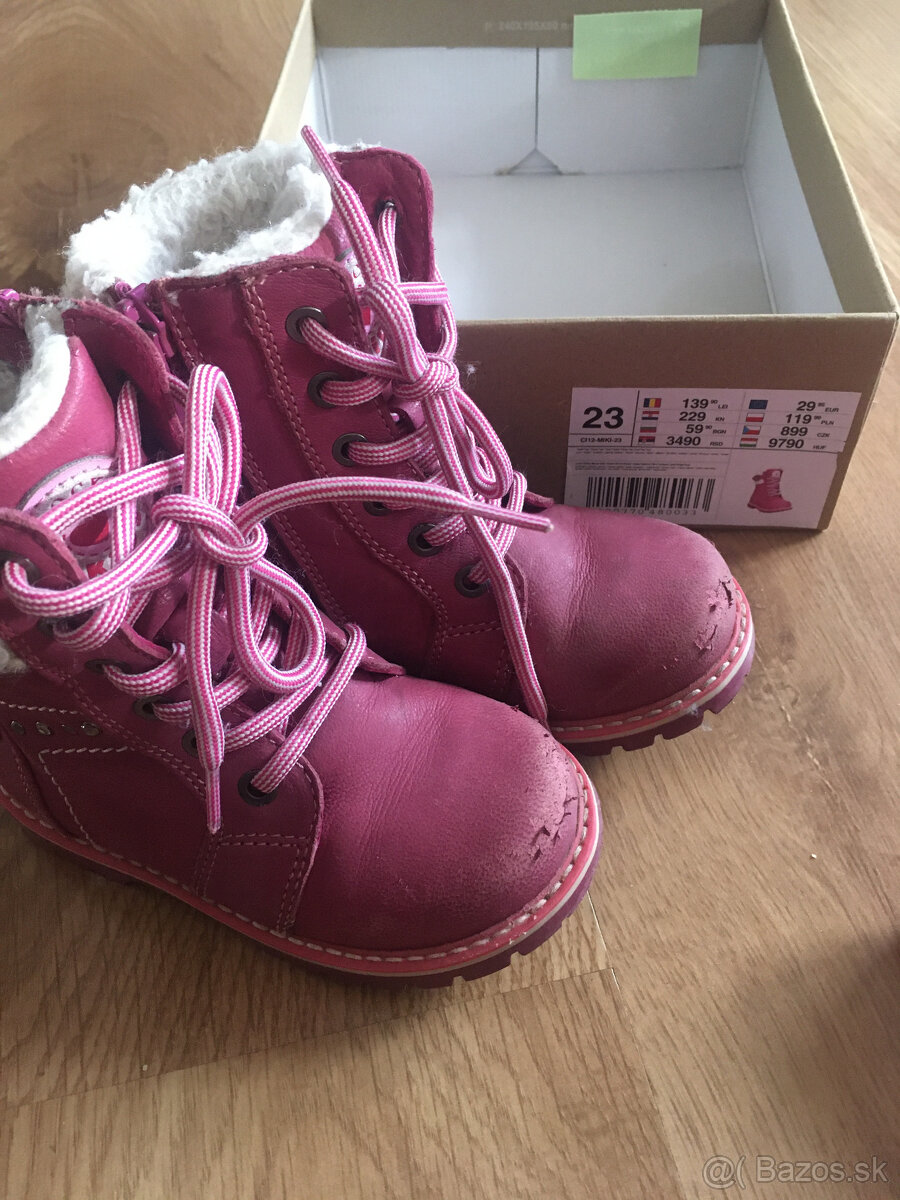 Predám zimné dievčenské čižmičky, veľkosť 23. Špičky sú obité, ale čižmičky aj tak výborne poslúžia.