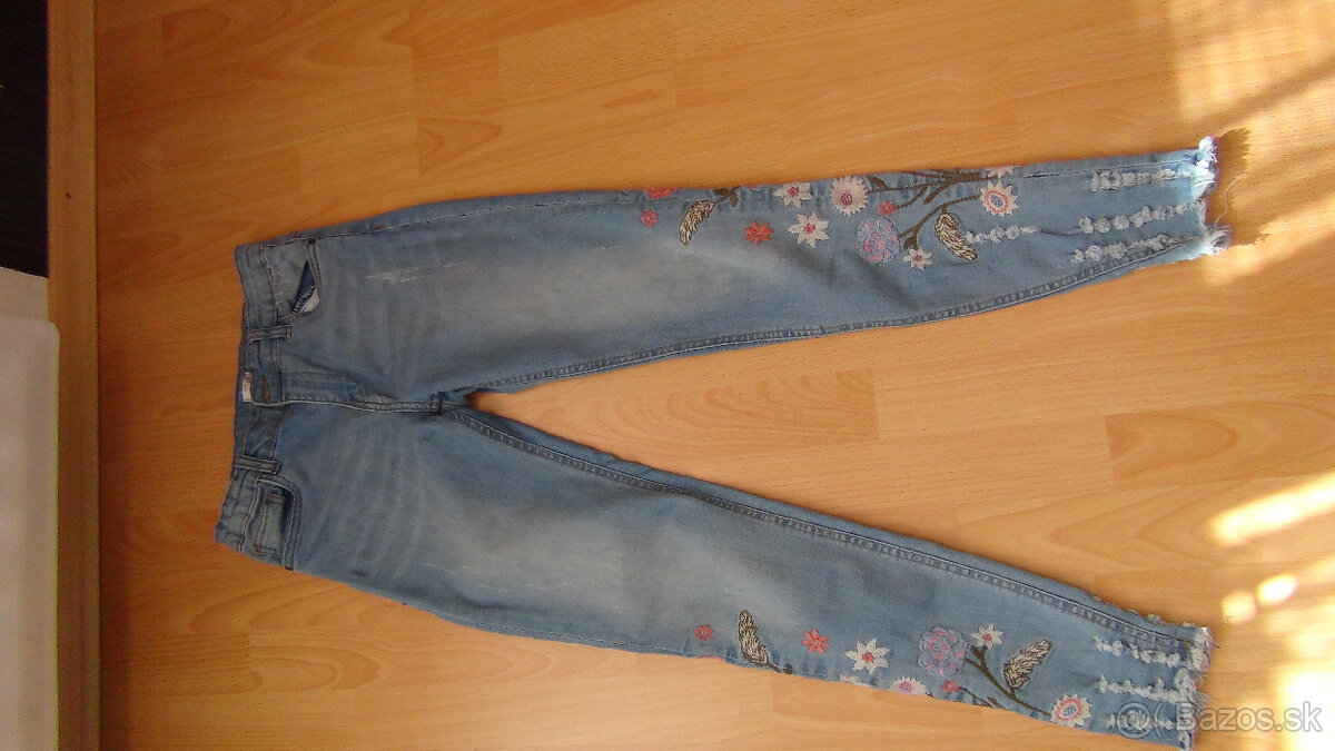 Predám pekné málo nosené vyšívané elastické dievčenské rifle značky Takko vo veľkosti 158. Šírka v páse je 34,5cm, dĺžka od rozkroka je 71cm.
