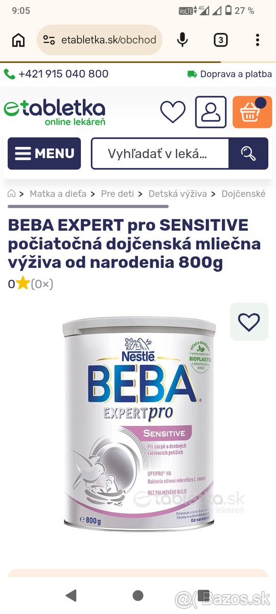 Beba expert pro sensitive - [9.2. 2026]Predám bebu expert pro sensitive. Cena 14€/ks. Mám 6ks.