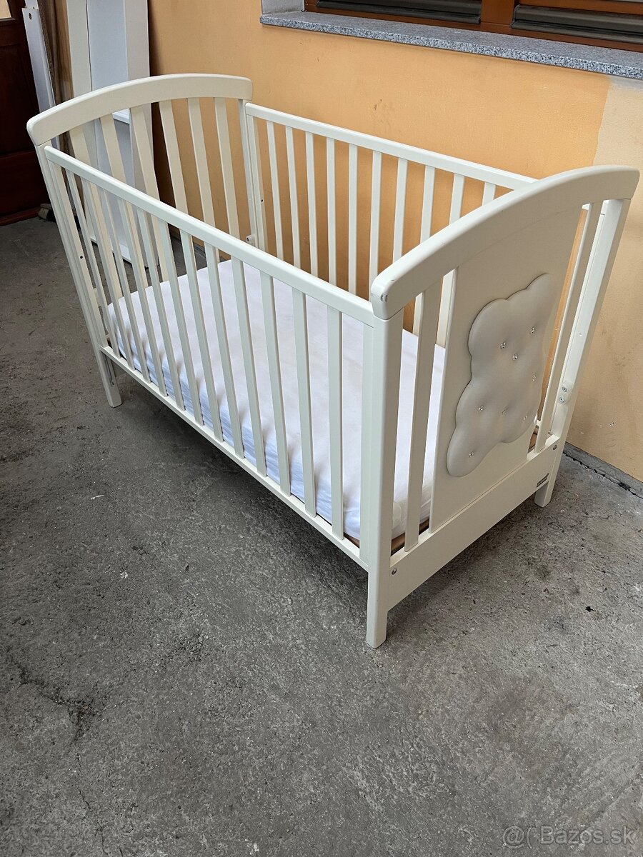 Predám málo používanú postieľku Talianskej značky Erbesi po jednom dieťati.Postieľka je vyrobená z bukového dreva zdobena swarovski elements