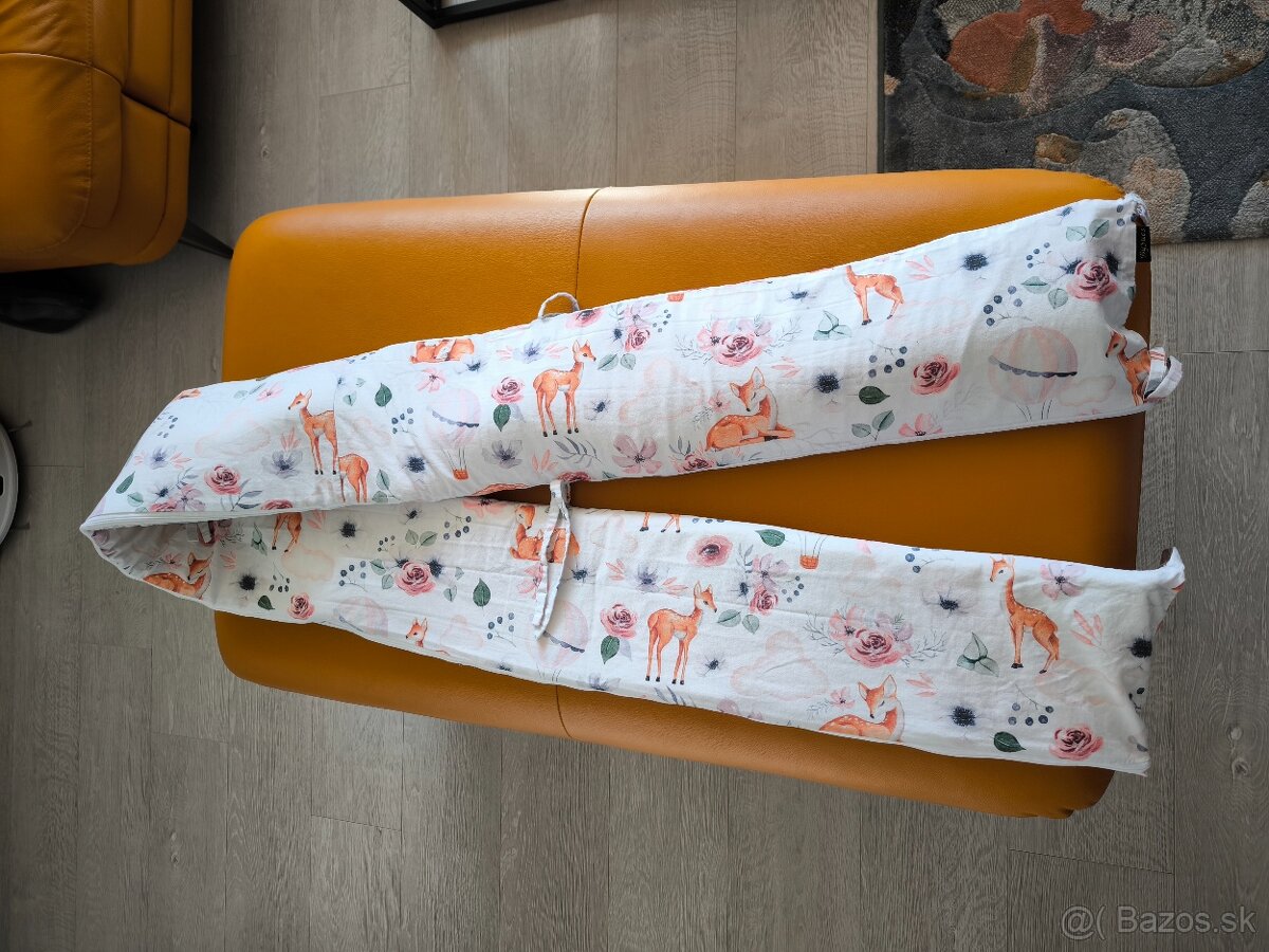 Predám mantinel do postieľky od slovenskej handmade značky BySues so vzorom srnky. Mantinel má rozmery 220x20 cm a poťah so zipsom sa dá zvliecť. Kupovaný ako nový za 55 eur, po jednom dieťatku. Mantinel má mierne poškodenie na poťahu pri jednej z upevňovacích šnúrok (viď foto 4).