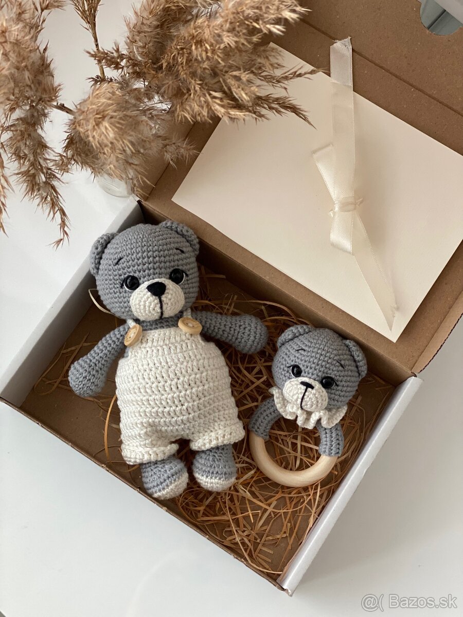 Set pre bábätko: Háčkovaná hračka a hryzátko