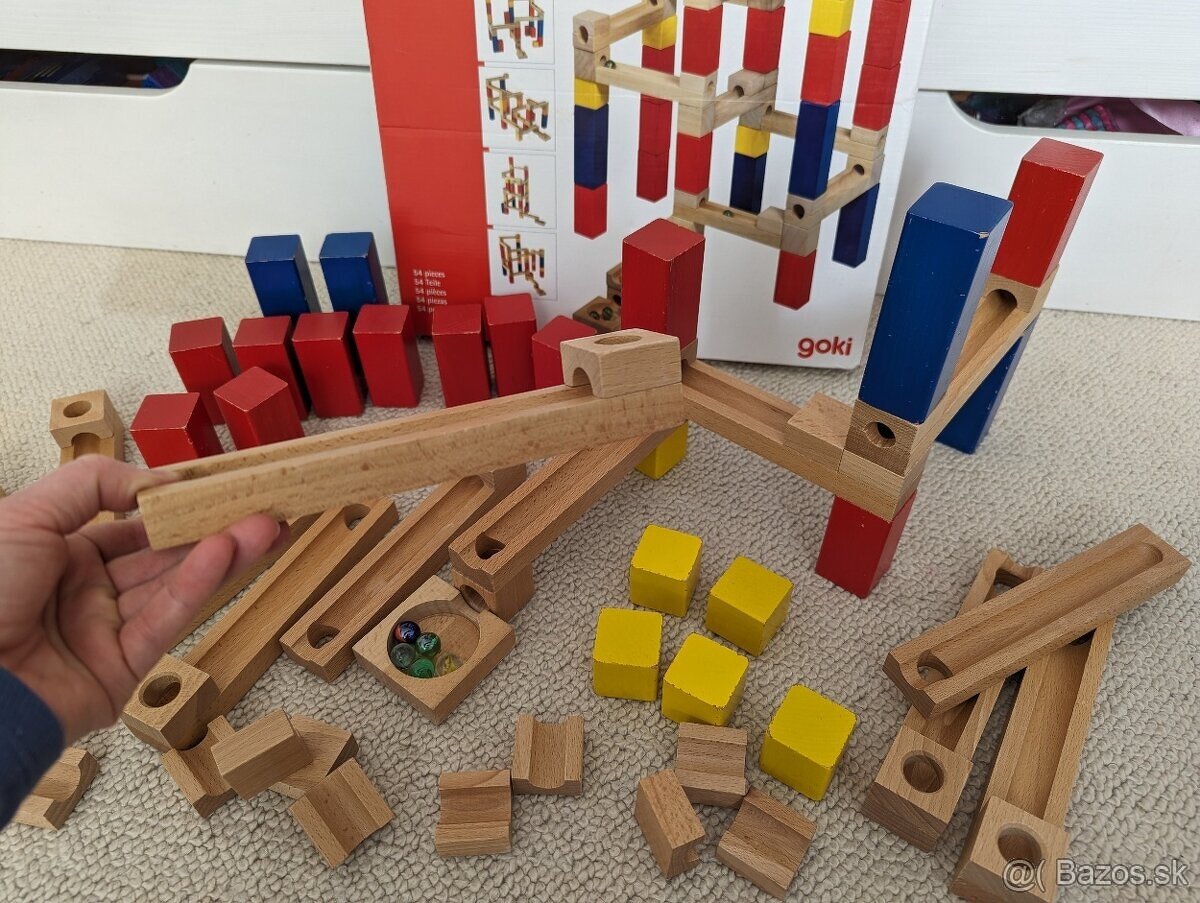 Guličková dráha, marble race, drevená dráha, pevná, robustná, hraná ale komplet, ok. Značka Goki, cena 17 eur