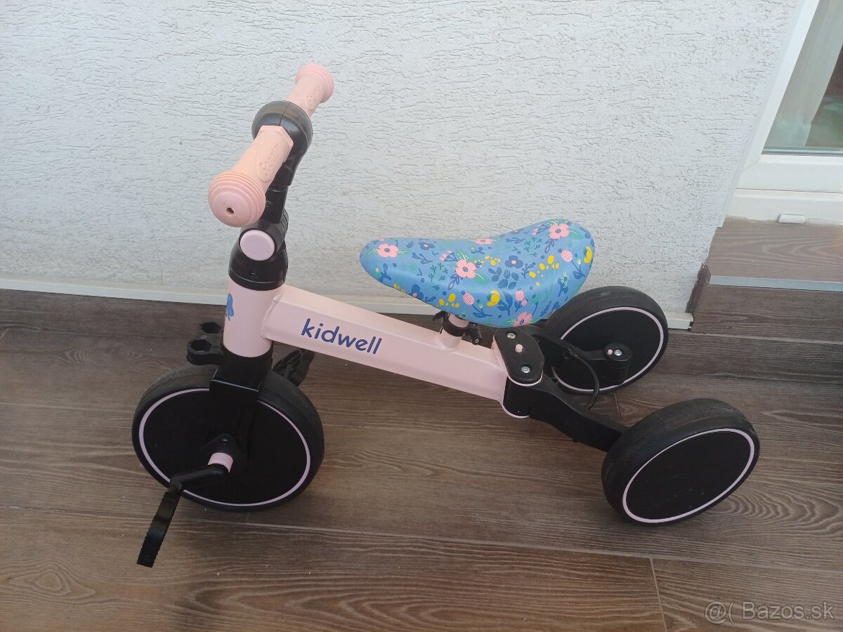Funguje ako odrážadlo, trojkolka s pedálmi a trojkolka bez pedálov.
