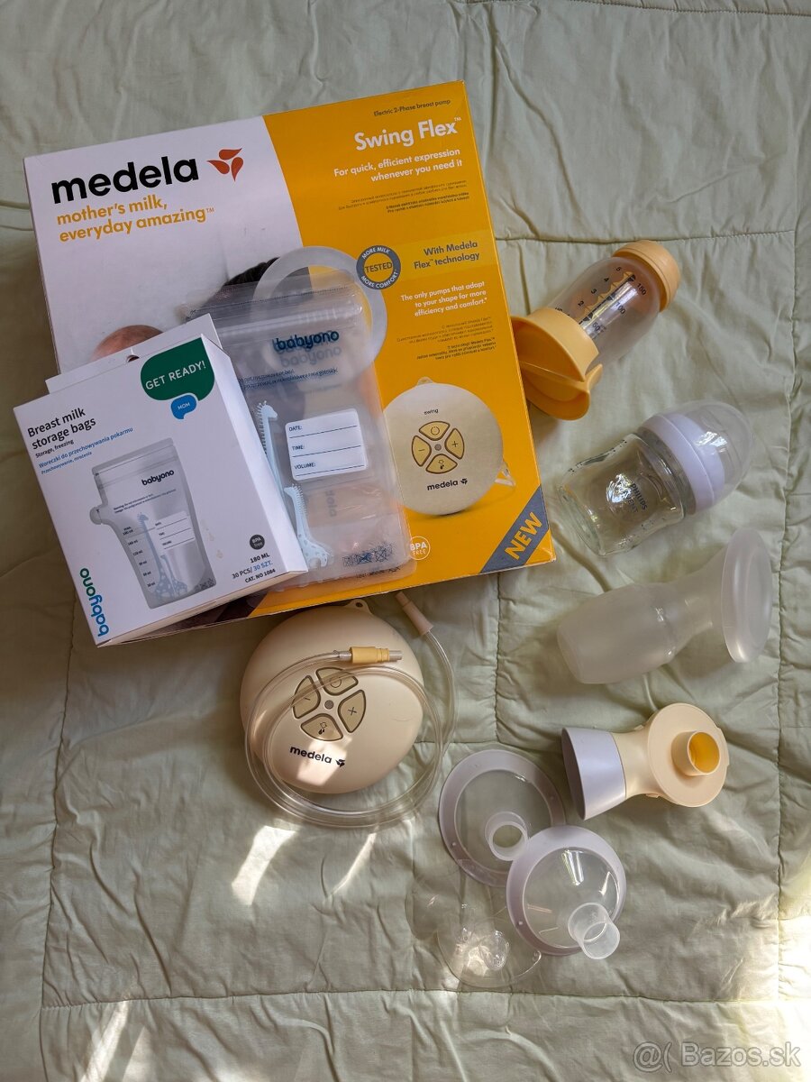 MEDELA Swing Flex - [22.2. 2026]Ahojte, predam odsavacku v zaruke, so vsetkym co k tomu bolo pouzitu len par krát je ako nová + navyse k nej dávam aj Avent vlozky do podprsenky, baby love sáčky na mlieko a este kojenecku flasricku MEDELA kompatibilna s odsavackou. povodna cena 125 iba odsavacka. Mozny odber osobne alebo aj v krabi ...