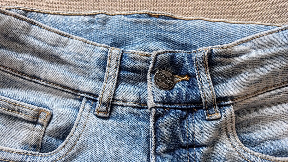 Majú nastaviteľný pás, zapínanie na zips a cvik, dve predné a 2 zadné vrecká.
