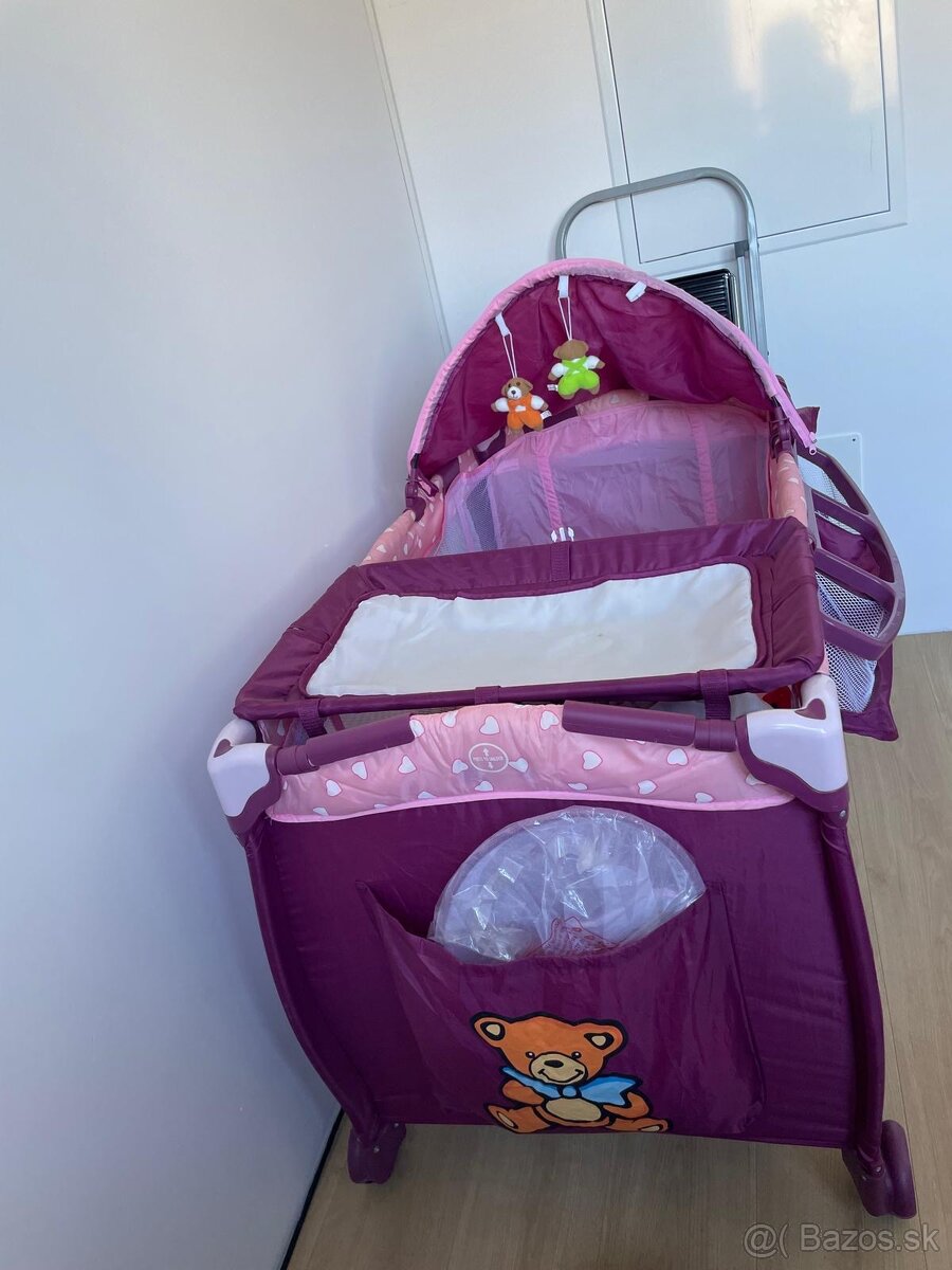 Predám detskú cestovnú postieľku, ktorá je všestranne využiteľná s veľmi praktickým využitím, ktoré sa dá odpojiť. Ako nová. Cena je 20,- EUR.