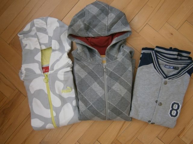 Puma bielo -šedá veľ. 158 na zips, nosená, na jednom rukáve zozadu ružový fľak, nedá sa mi to nafotiť, dĺžka mikiny 60 cm, parádu narobí, cena 2 eur + pošta.