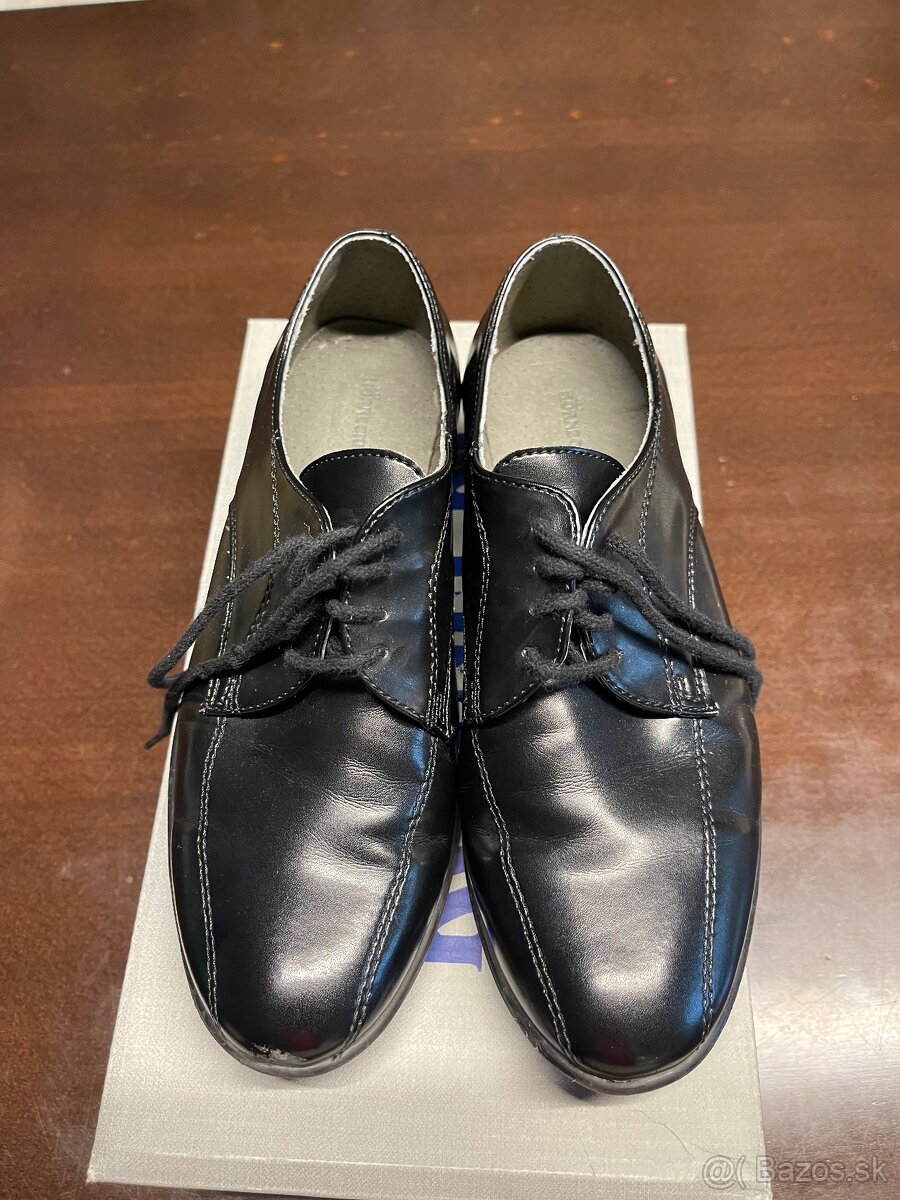 Predam chlapcenske cierne topanky, velkost c. 32. Vhodne na slavnostne prilezitosti. Zvnutra su kozene. Syn ich mal obute iba 1xkrat🙈.. Cena 10 e + postovne