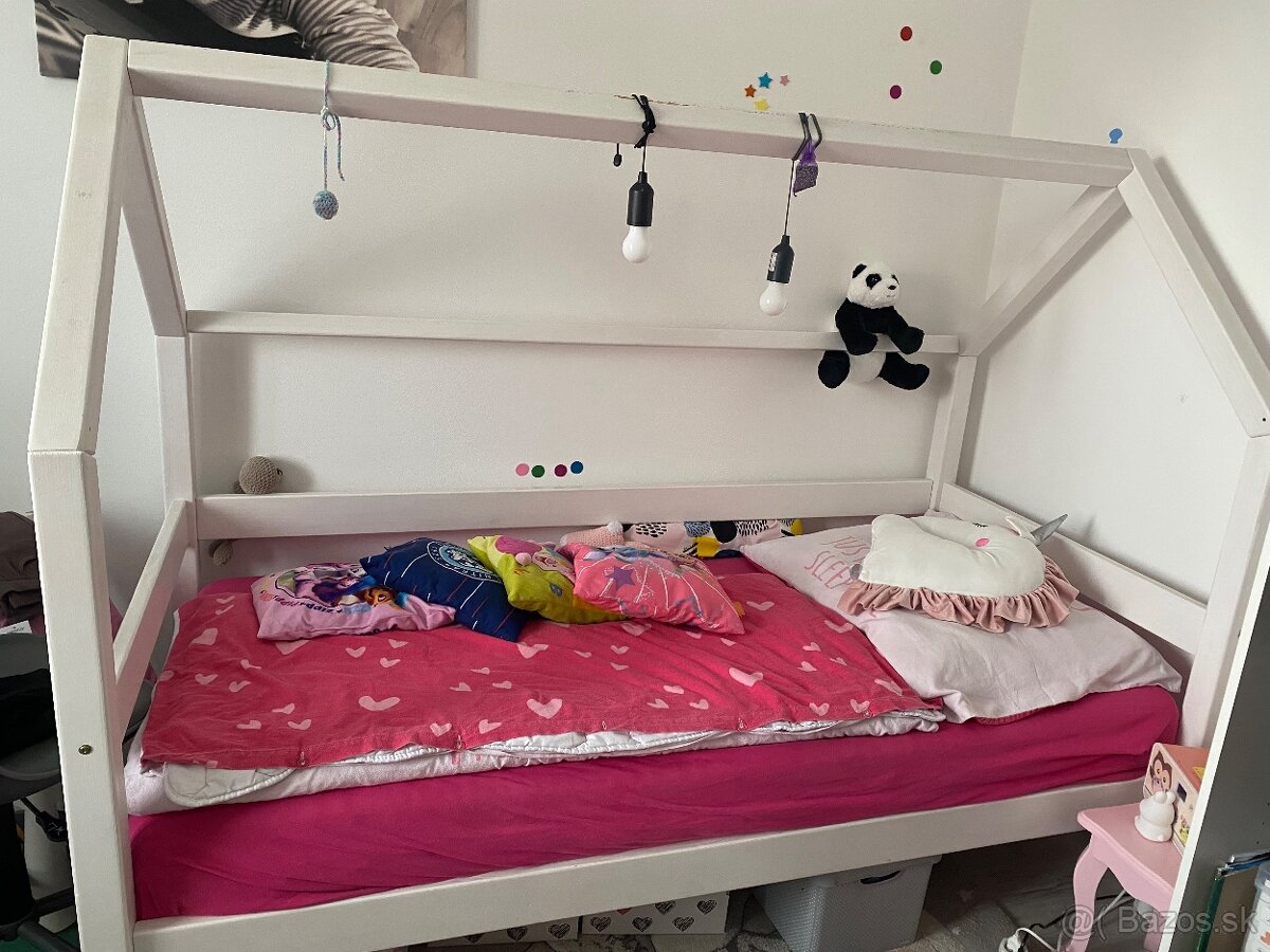 Posteľ pre dieťa - TOP - [4.3. 2026]Predám detskú posteľ domček(farba: biela/zelená) s úložným priestorom a matracom. Posteľ bola používaná pri jednom dieťati a je bez ochrannej zábrany.Rozmery: 160x80cm