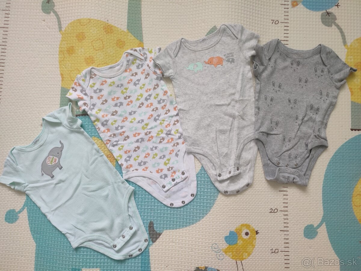 Letné bodička 3 - 6 mes., 3x bodička so slonikmi(na golieri maly flak) a jedno Gap baby bodičko, vsetko bavlnene.