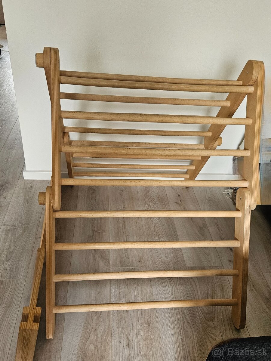 Piklerovej triangel a šmykľavka 2v1 - [27.2. 2026]Predám veľký drevený montessori Piklerovej trojuholník/triangel (výška 87 cm) s doskou 2v1. Z jednej strany šmykľavka, z druhej rebrík. Zmontovaný pomocou pevných skrutiek. Mierne zošuchnuté rebriny, inak všetko super a veľmi pevný stav.