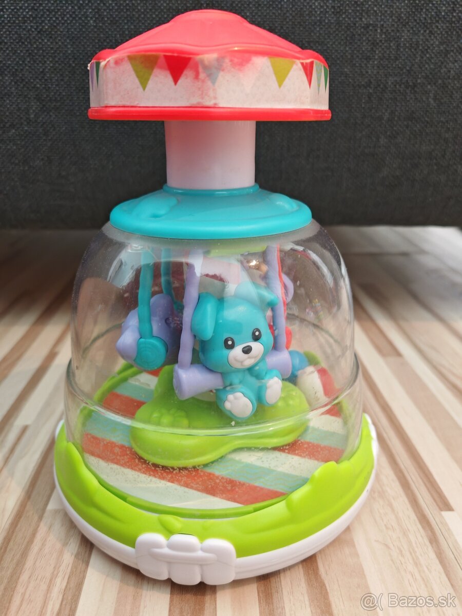 Stlačte vrchnú časť a kolotoč sa začne otáčok ako skutočný. Pohybujúce sa farebné guľôčky deti zaujmú a pobavia. Perfektná hračka pre rozvoj manuálnych schopností, porozumenia príčiny a následku. Rozmer balenia: 17 x 24 x 17 cm. Vek: 9m +