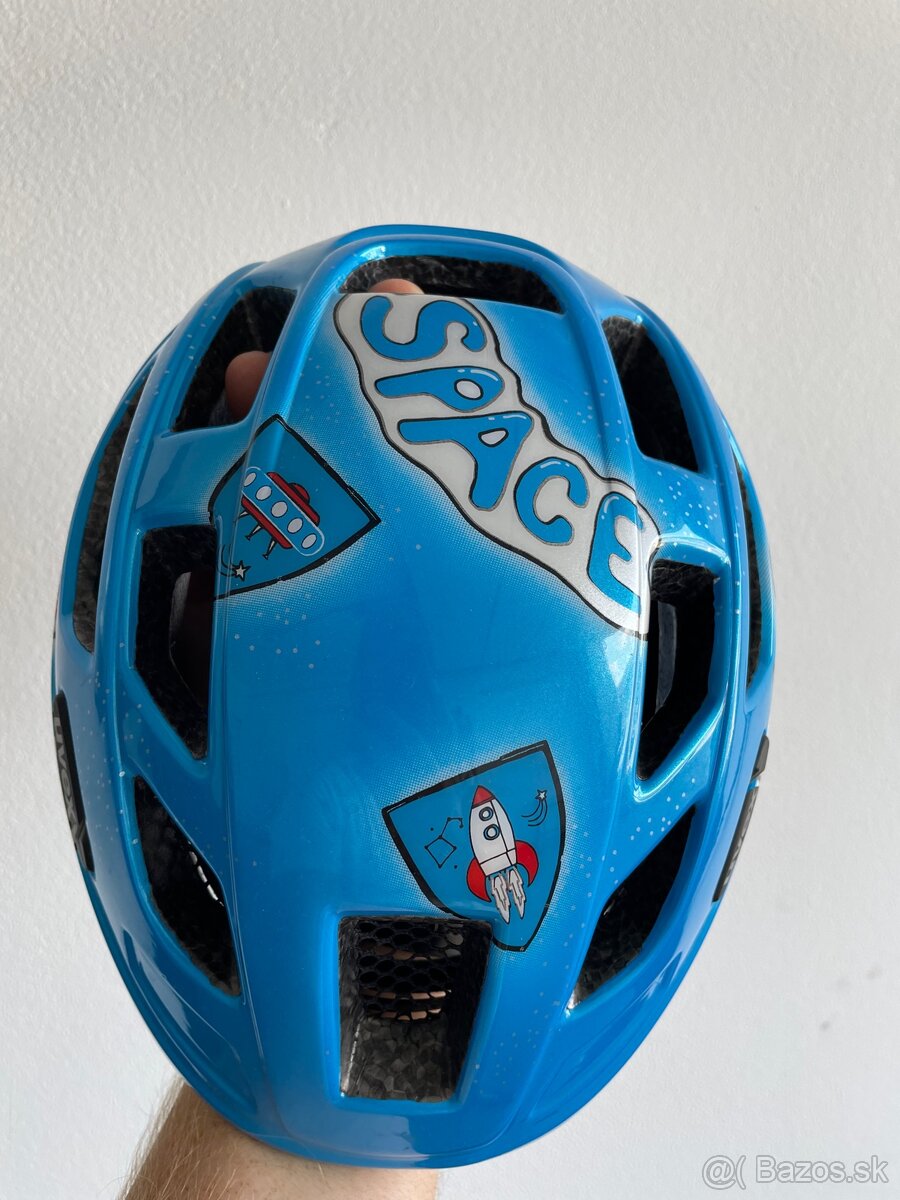 Predám detskú prilbu na bicykel Uvex, veľkosť 47-52 cm. Prilba je bez poškodenia a škrabancov. Využitie: bicykel, kolobežka, korčule. Pôvodna cena 40€.