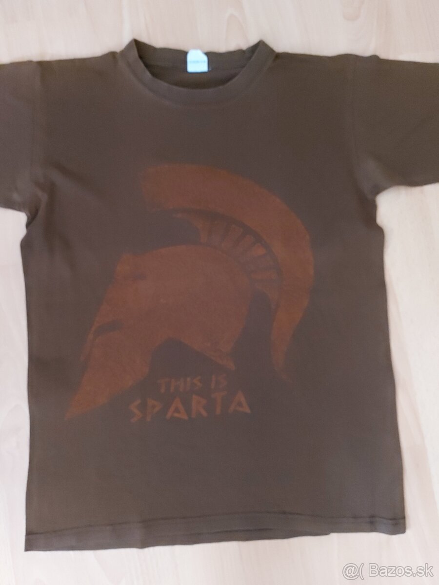 - trblietavý motív spartského vojaka v prilbe splýva s pozadím