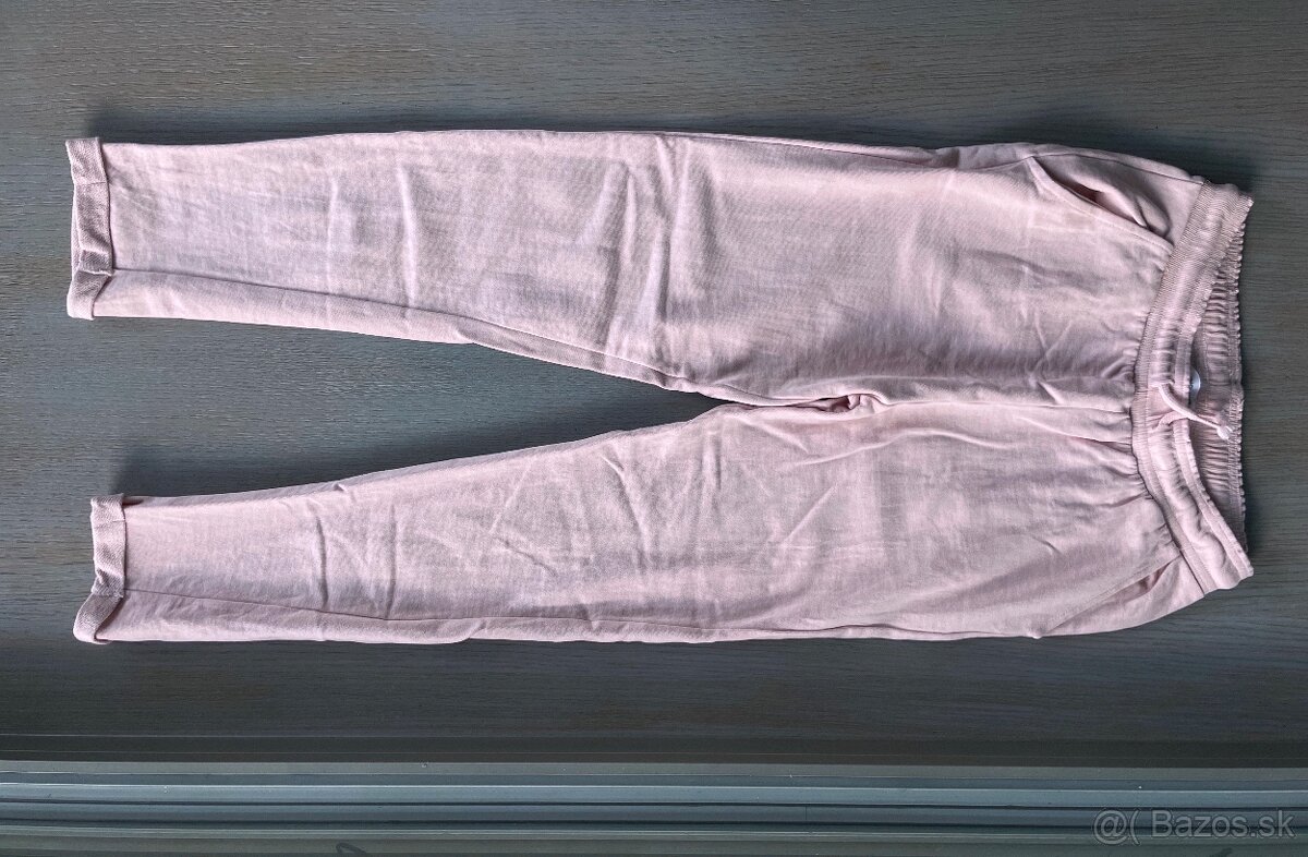 ružové tepláky s prednými vreckami oblečené 2-3x, vo vynikajucom stave, dolu nemajú gumu ako klasické tepláky, čiže vyzerajú ako gate (napr. do školy) - 9euro