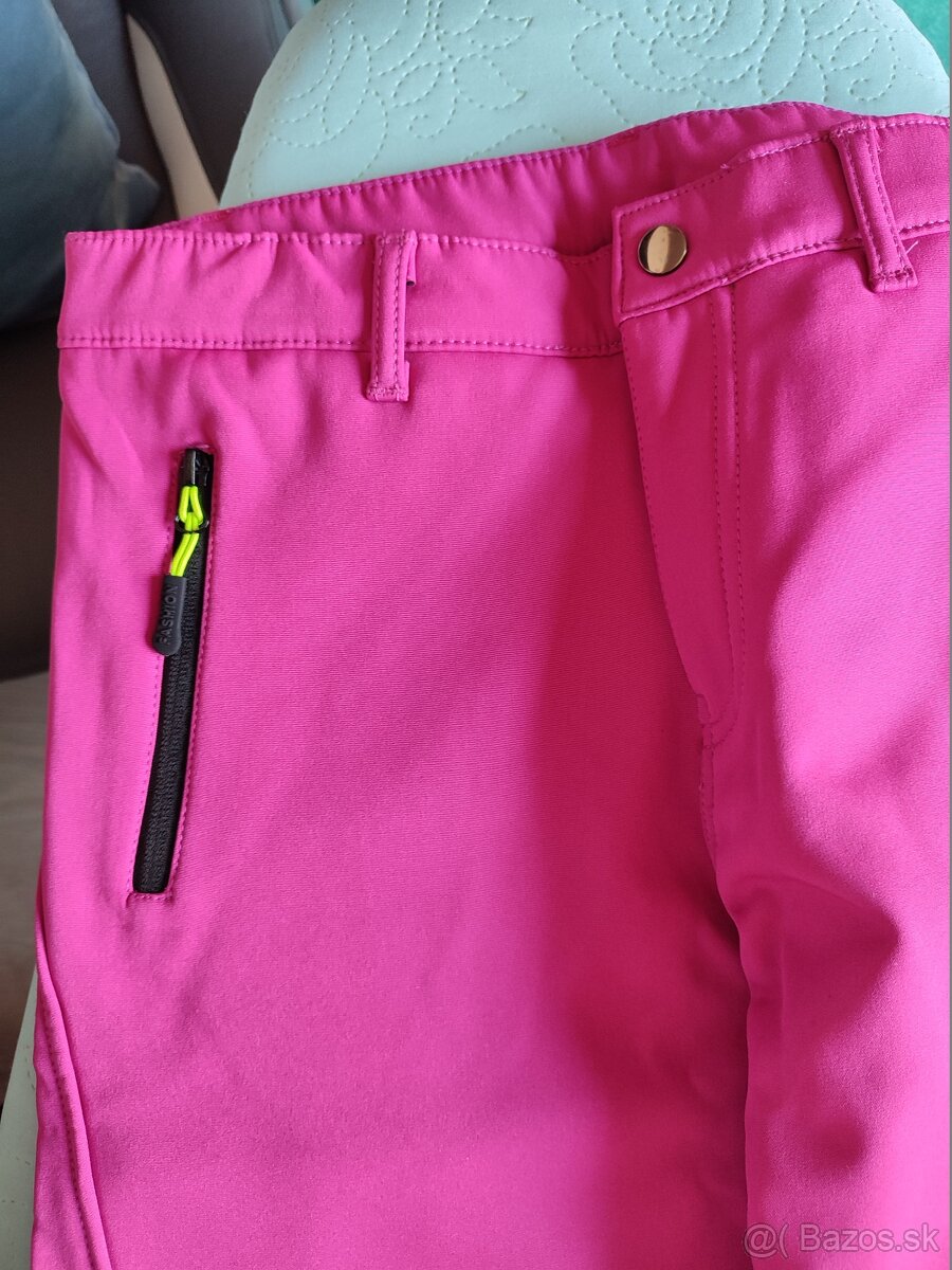 Predám tieto krásne ružové zateplené softšelové nohavice vo veľkosti 152. Nohavice sú vhodné aj do snehu, na sánkovačku, lyžovačku. V páse majú zavedenú gumičku na prípadne stiahnutie pásu a na spodku nohavíc je tiež gumička proti snehu. Nohavice veľmi pekne sedia na postave, v predu majú dva vrecká na zips a spevnené kolená.
