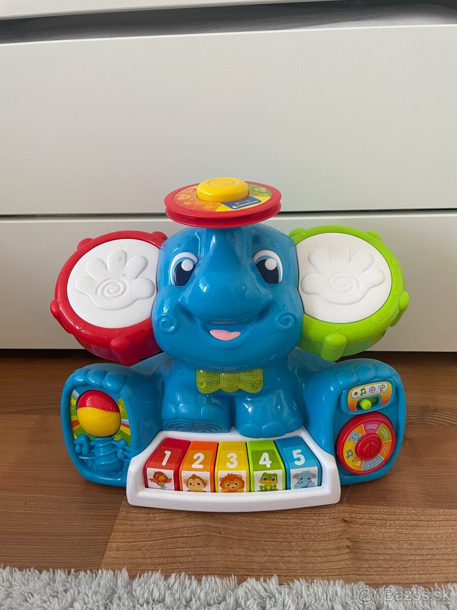 Posunieme zvukového slona - baby clementoni. Interaktívna zvuková hračka, obsahuje rôzne štýly hudby, zvuky, melódie a je vo viacerých jazykoch. Podporuje jemnú motoriku, huudobný sluch aj vizuálne schopnosti