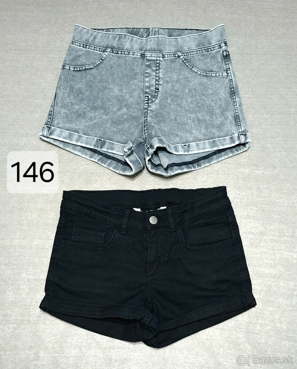Predám dievčenské, rifľové kraťasy. Sú vo veľkosti 146, tak od 10 do 11 rokov. Šedé kraťasy sú nové, čierne nosené. Bez poškodenia. Značka H&M. Cena spolu je 3 Eur.