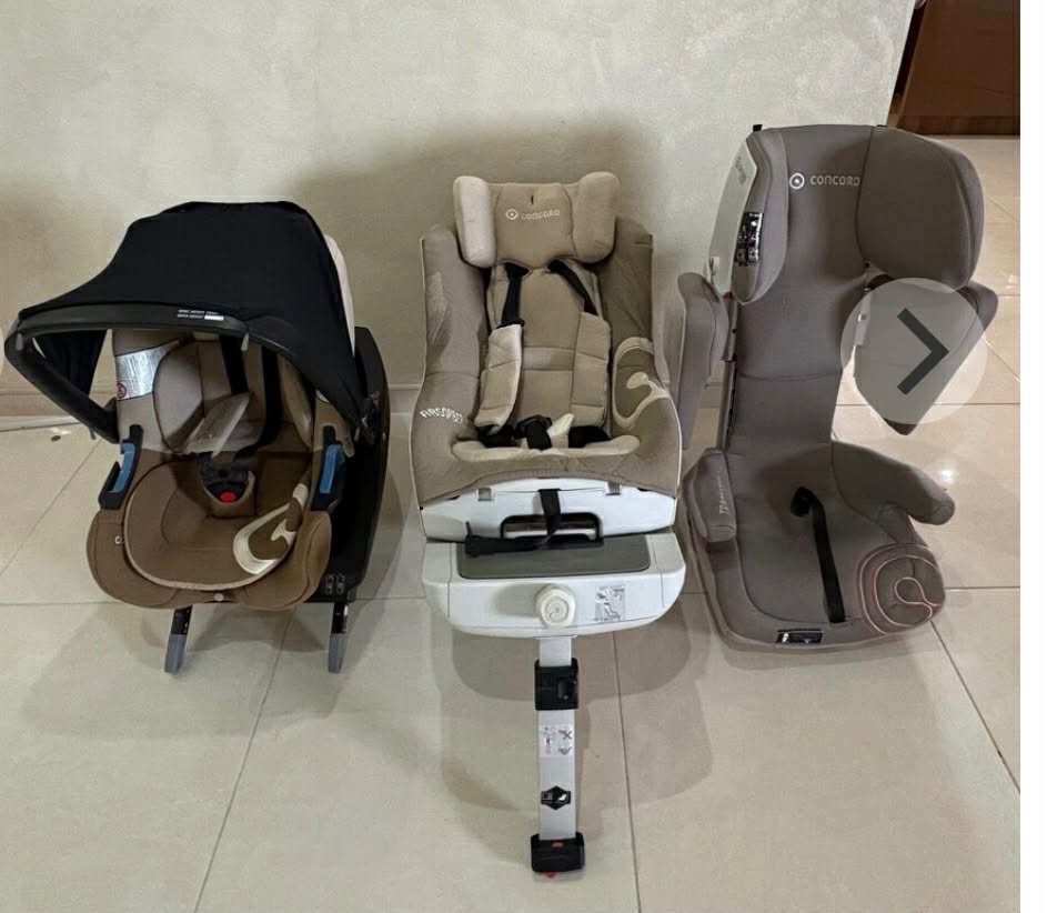 Predám samostatne po kuse alebo ako kompletný set 3 autosedačky CONCORD – od narodenia do 36 kg.