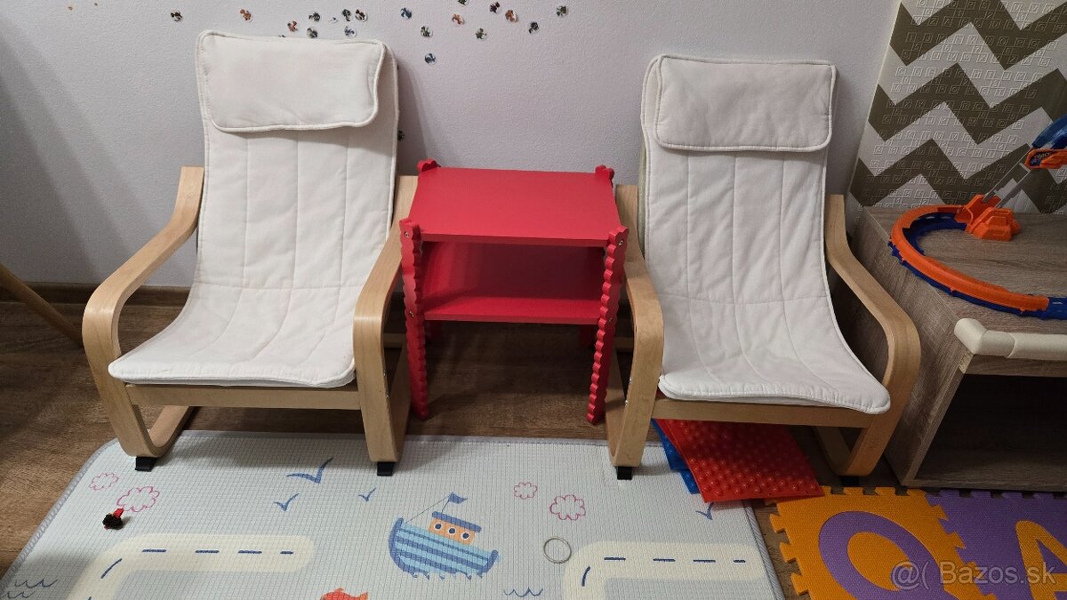 Predám 2ks detské kreslá ikea poäng, pekný stav, snímateľné poťahy sa dajú jednoducho vyprať, v prípade záujmu pridám aj stolík na foto, predám spolu/samostatne.