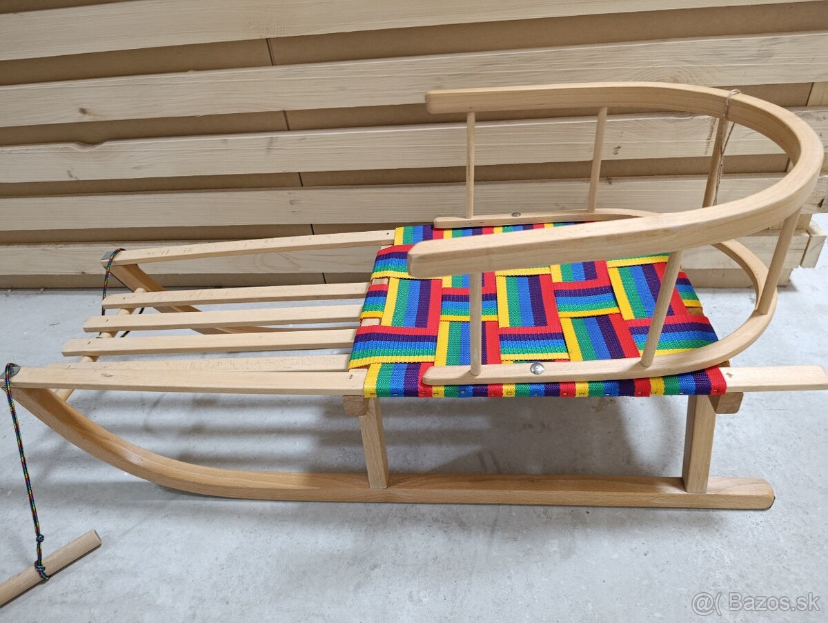 Predám krásne tradičné drevené sánky s operadlom a farebným výpletom.Výborny stav,par krát použite,ideálne pre menšie deti vďaka opierke, ktorá poskytuje lepšiu stabilitu.