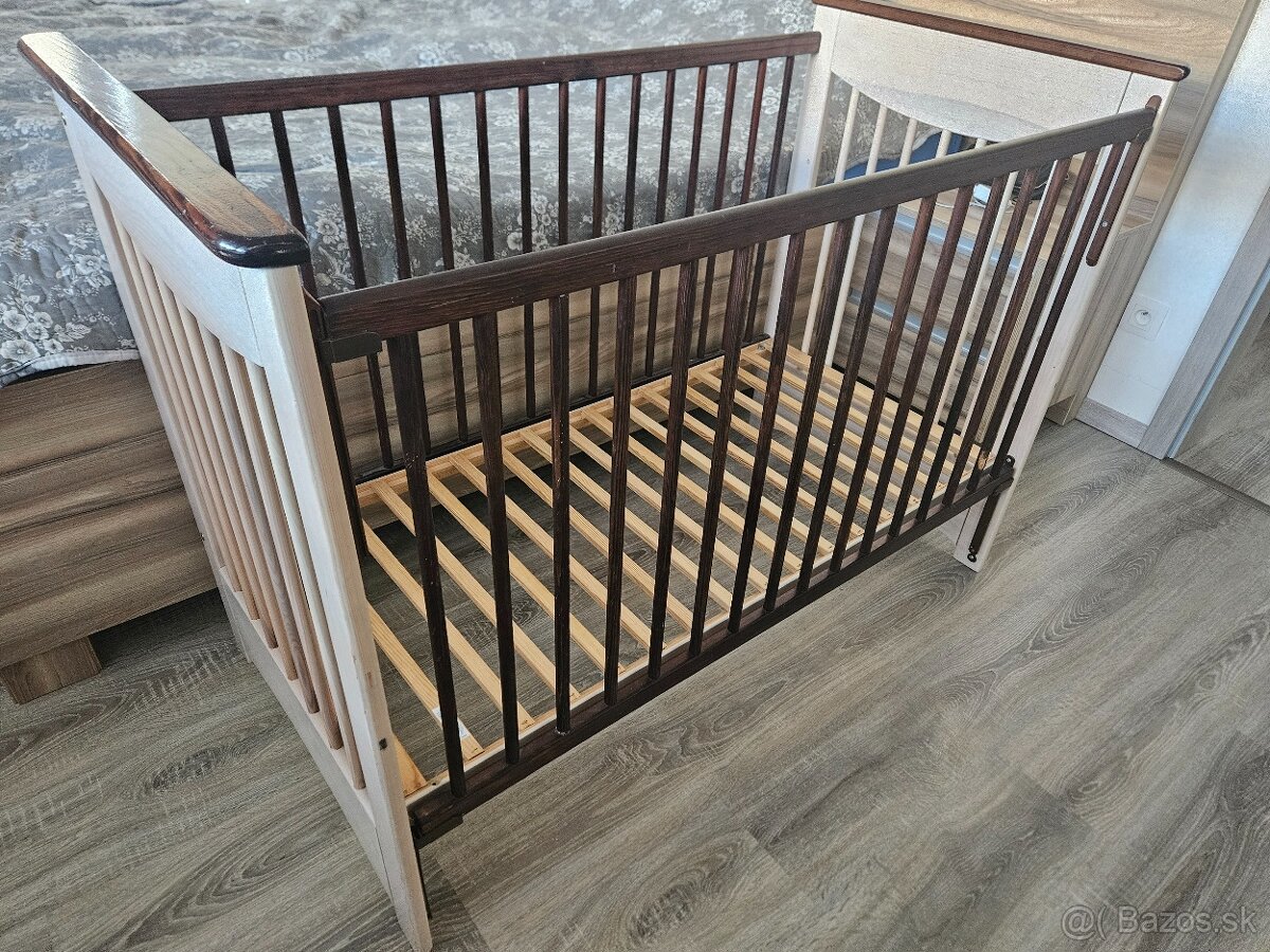 Rozmer 128x67x92cm, rozmer na madrac 120x60cm, ma znamky pouzivania, 3 velkosti na umiestnenie madraca, jedna mrieska je okusana vid foto. Pri otvarani postielka smer dole chybaju cupliky na zachytenie tiez vid foto. K postielke zdarma madrac nie je zapocitany v cene. Viem aj doviest v ramci TN, NMnV, PN,TT, BA.