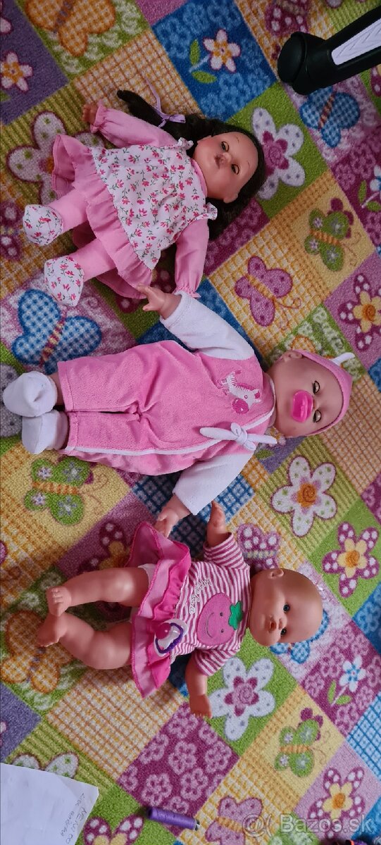 Predám bábiky,su v peknom hranom stave.nie su poškodené.Babika Nenuci vonia-jahodovo.Bábika v strede -Lidl.na baterky plače ,rozprava.(treba vymeniť baterky)S vrkočmy babika tiež na baterky-rozprava(treba vymeniť baterky.)Osobný odber KE.