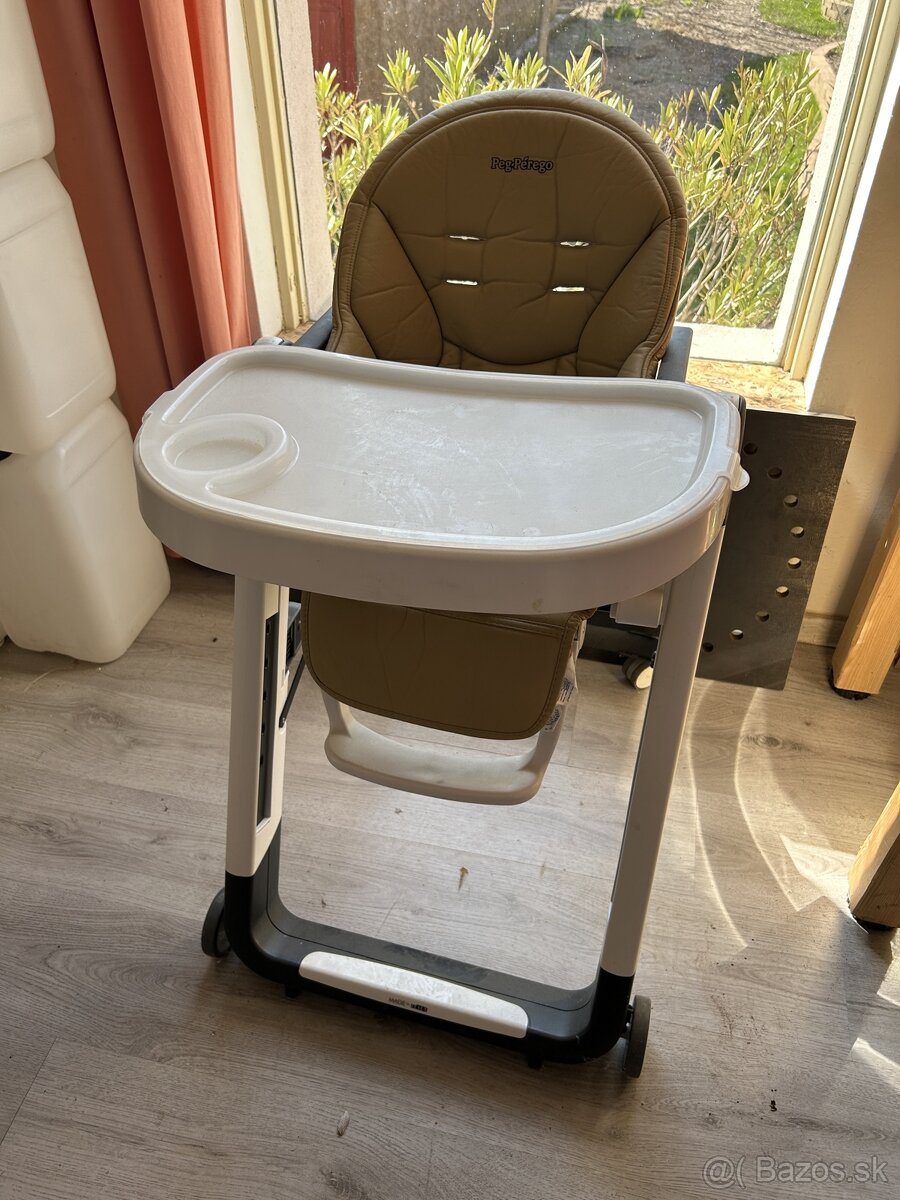 Predam detsku jedalensku stolicku znacky Peg Perego v peknom stave, iba trochu zaprasena. Skladaci mechanizmus plne funkcny, prakticke kolieska a moznost polohovania sedacky do lahu. Komplet obsah - tacka, vrchna pridavna tacka, popruhy.