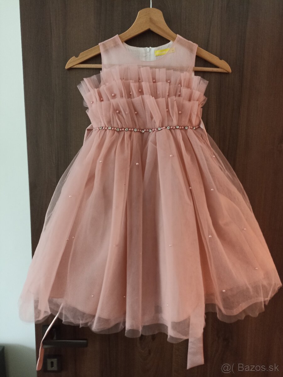 Spoločenské šaty, veľkosť 116 - [2.3. 2026]Predám šaty pre dievčatko vo veľkosti 116, mali sme ich 1x oblečené...vzadu je zips na zapínanie a mašľa na uväzovanie..majú viacero bielych spodničiek, takže vôbec nepresvitajú..sú skôr na štíhlejšie dievčatko /v prípade potreby, premeriam/