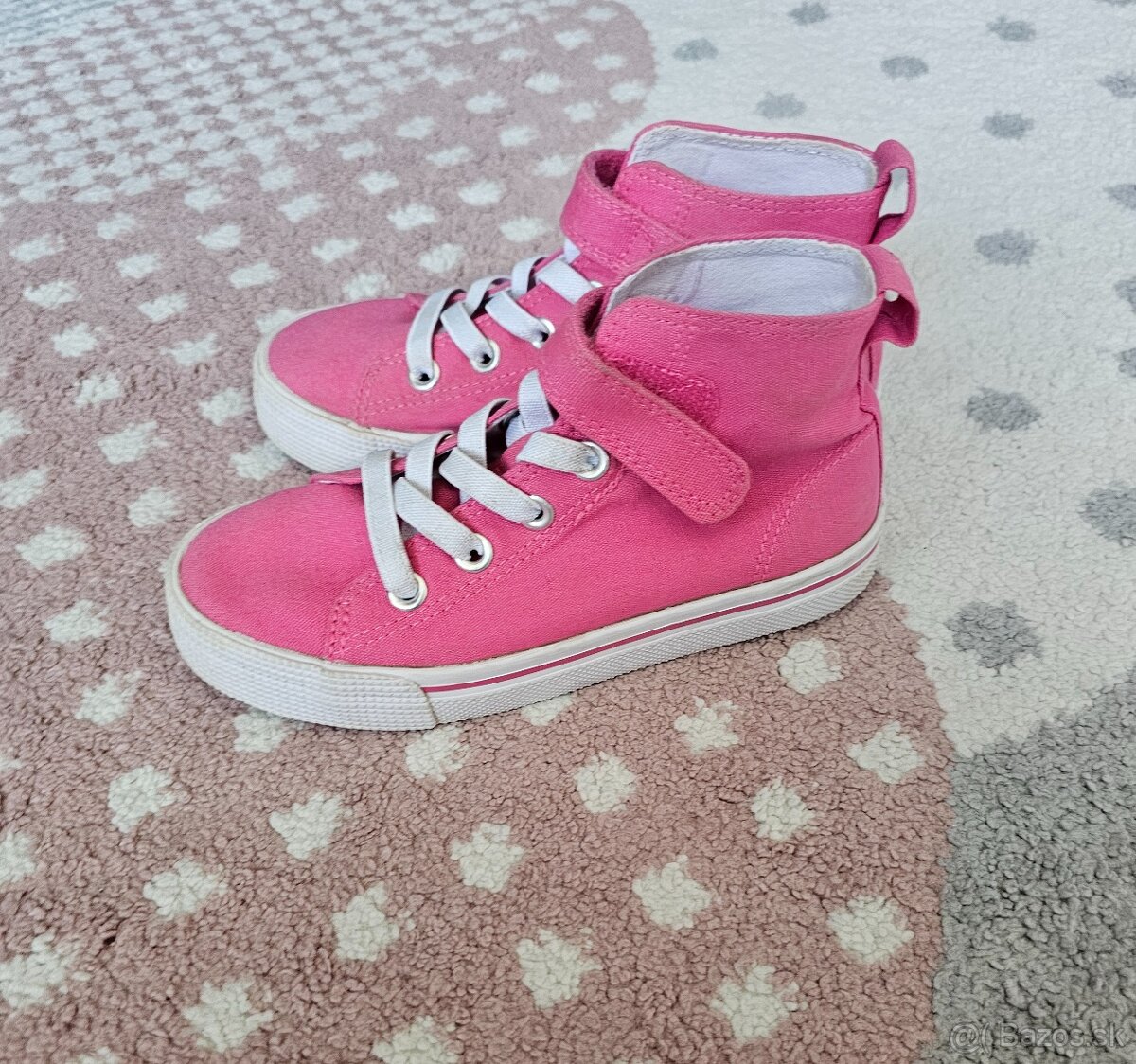 Dievčenské tenisky/topánky ako nové - [9.3. 2026]Veľkosť 21. Krásne štýlové tenisky pre dievčatká. Spevnená špička, členky, vhodné pre prvé krôčky. Vnútro obuvi a vložka sú z usne. Vložka je vyberateľná. Celková dĺžka vložky je 13.5cm, ale na päte je ku koncu ohnutá, dĺžka vložky po miesto ohnutia je 12.5cm, čiže vhodné pre nožičku do 12cm. Možné ...