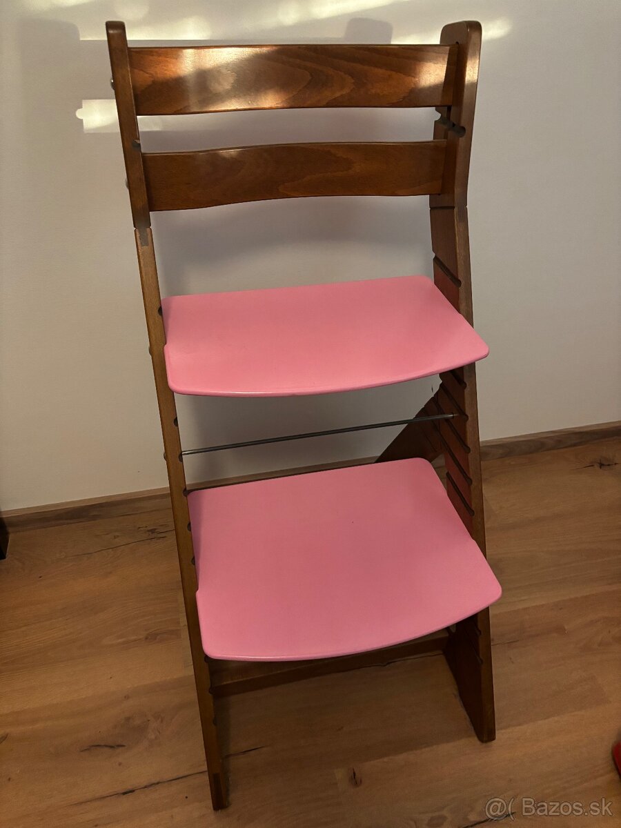Stokke tripp trapp ružová - [9.3. 2026]Rastúca jedálenská stolička stokke tripp trapp. Používaná, mierne známky používania. Stále v peknom stave a stabilná. Nevŕzga, je pevná a nastaviteľná.