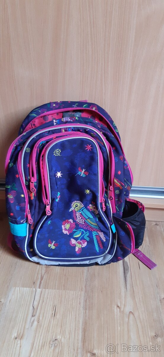 Školský batoh Topgal so štyrmi prepážkami, každá má samostatný zips. Vrecko na vodu (sieťka na spodnej časti pretrhnutá - viď obrázok). Mierne opotrebovaný