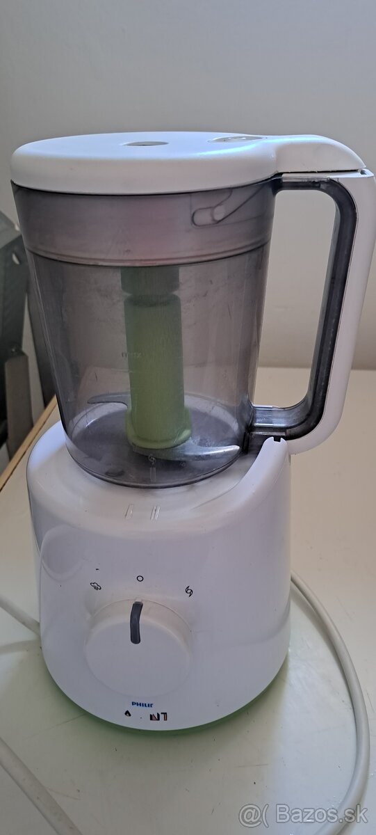 Kombinovaný parný hrniec a mixér v originálnej krabici, s ktorým ľahko a rýchlo pripravíte zdravé detské jedlo. Najprv sa varí v pare, potom sa hrniec otočí a môžete mixovať. Na nádobe sú zvonka mierne prasklinky (viď foto) ale neovplyvňuje to používanie.