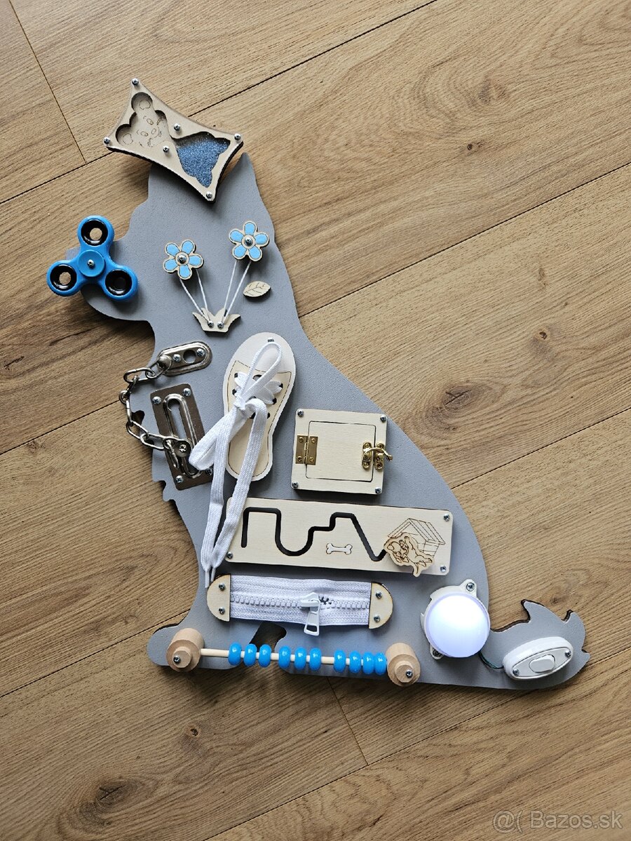Nová drevená busy board PES - [27.2. 2026]Predám aktivity board drevenu interaktivnu edukacnu tabulu psika 40x60cm, vyrobené z ľahkej drevenej preglejky, možne menit farbu podľa požiadavky.