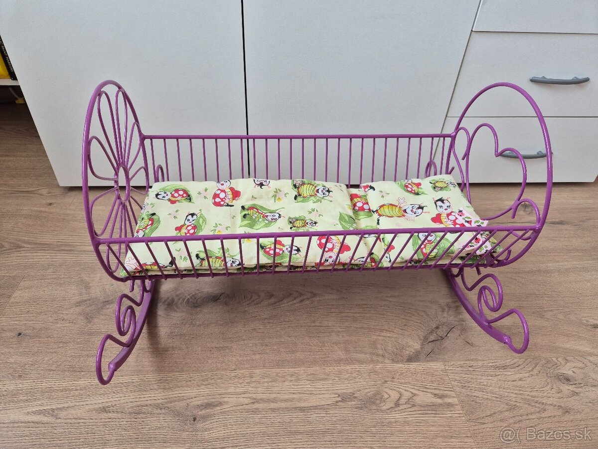 Predám kovovú kolísku pre bábiku s vankúšikom a prikrivkou