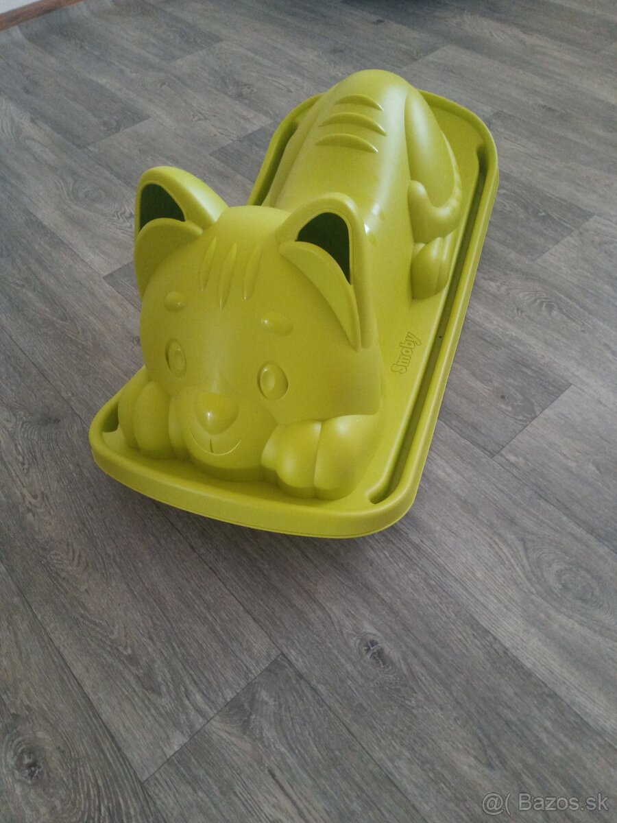 Detská hojdačka na zem Smoby v tvare roztomilého kocúrika s milou tvárou je prevedená v krásnej zelenej farbe. Je to obľúbená hračka pre všetky deti už od 18 mesiacov. Hojdačka pre deti má pohodlné, ergonomicky tvarované sedadlo a dieťa sa pri hojdaní drží za ušká kocúrika. Je to veľmi stabilná hračka. Bezpečnosť jej zaručujú oblé a jemné hrany, ktoré sú vhodné pre najmenšie deti. Plastový materiál detskej hojdačky v tvare zeleného kocúra je pevný a kvalitný no zároveň jemný a príjemný na dotyk pre jemné detské rúčky.