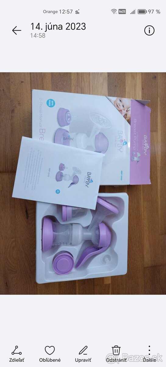 Dvojita duo elektricka odsavacka mlieka Philips Avent - [9.3. 2026]Dvojita duo elektricka odsavacka mlieka Philips Avent SCF397/31. Je plne funkcna. Dam k tomu este jednu malu a jednu velku plastovu flasu, prsne vlozky cca 30ks, sacky na uchovanie materskeho mlieko cca 25ks. Cena za komplet vsetko je 85€. K odsavacke nie je uz krabica.